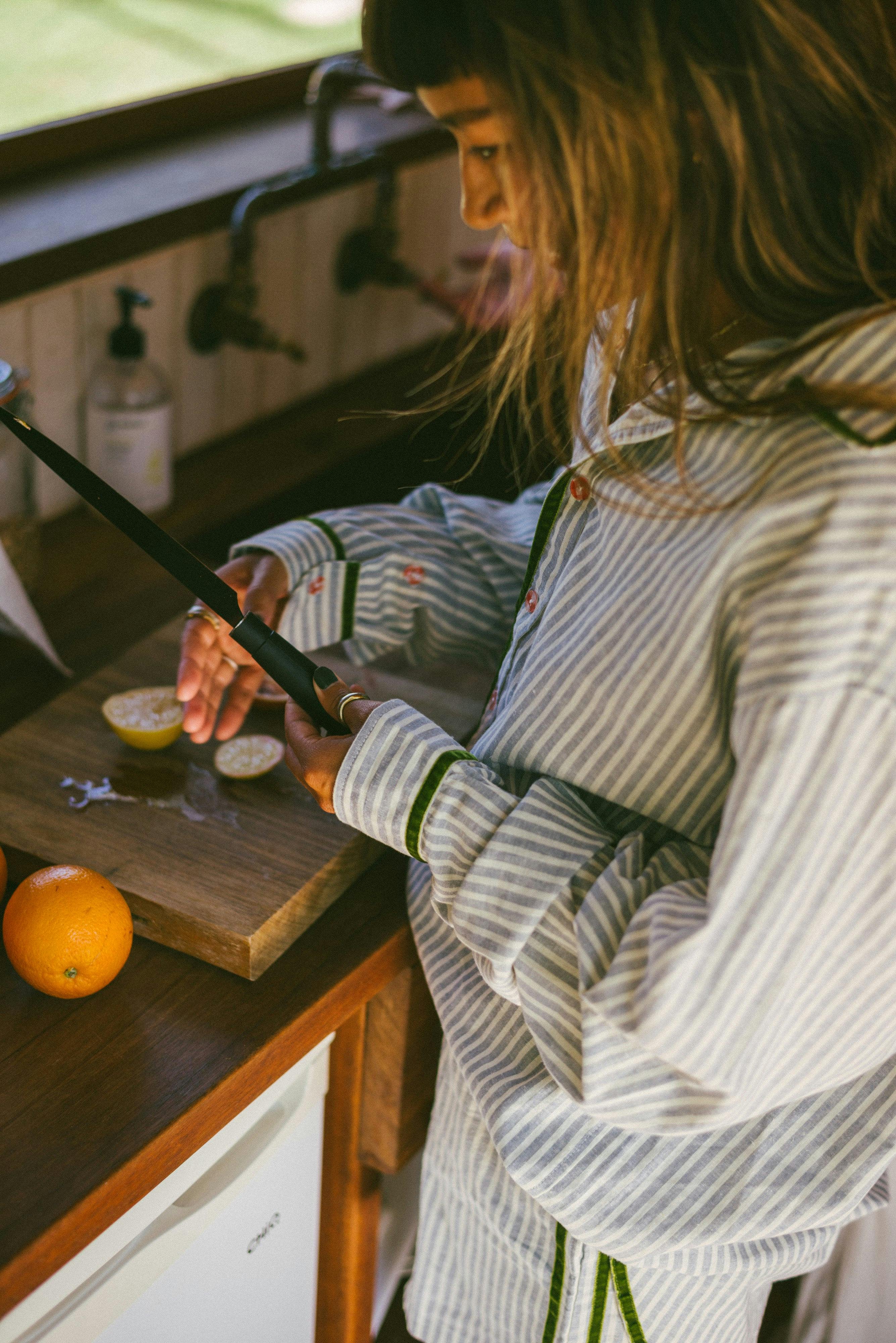 PJ Shirt in Green Velvet Stripe -