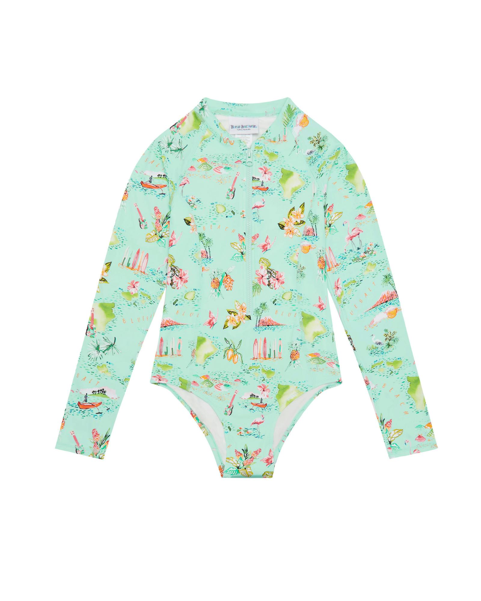 Girls Long Sleeve Rash Top - Hawaiian Vibes -