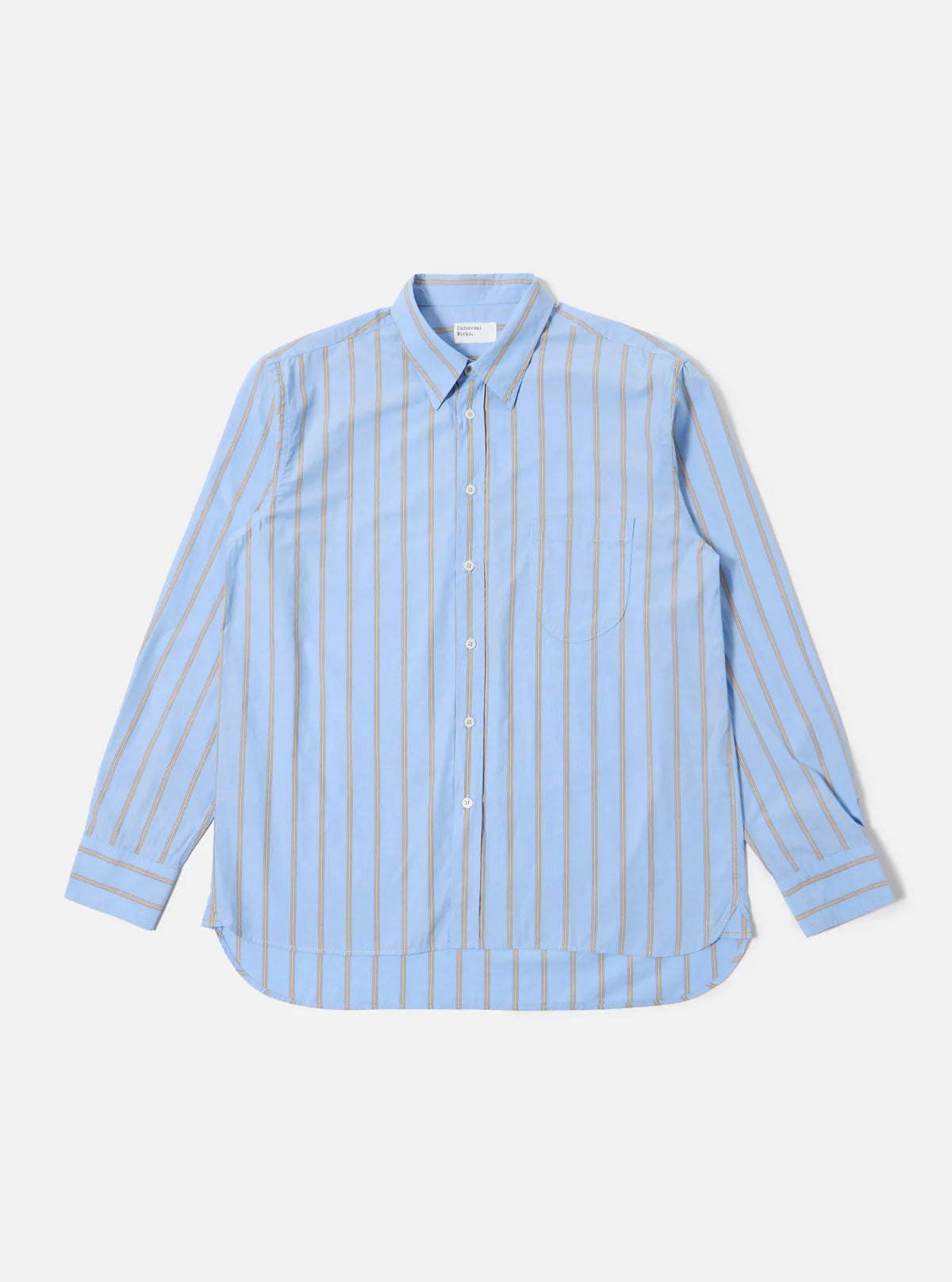 Universal Works Pop Stripe One Lazy Day Shirt in Blue