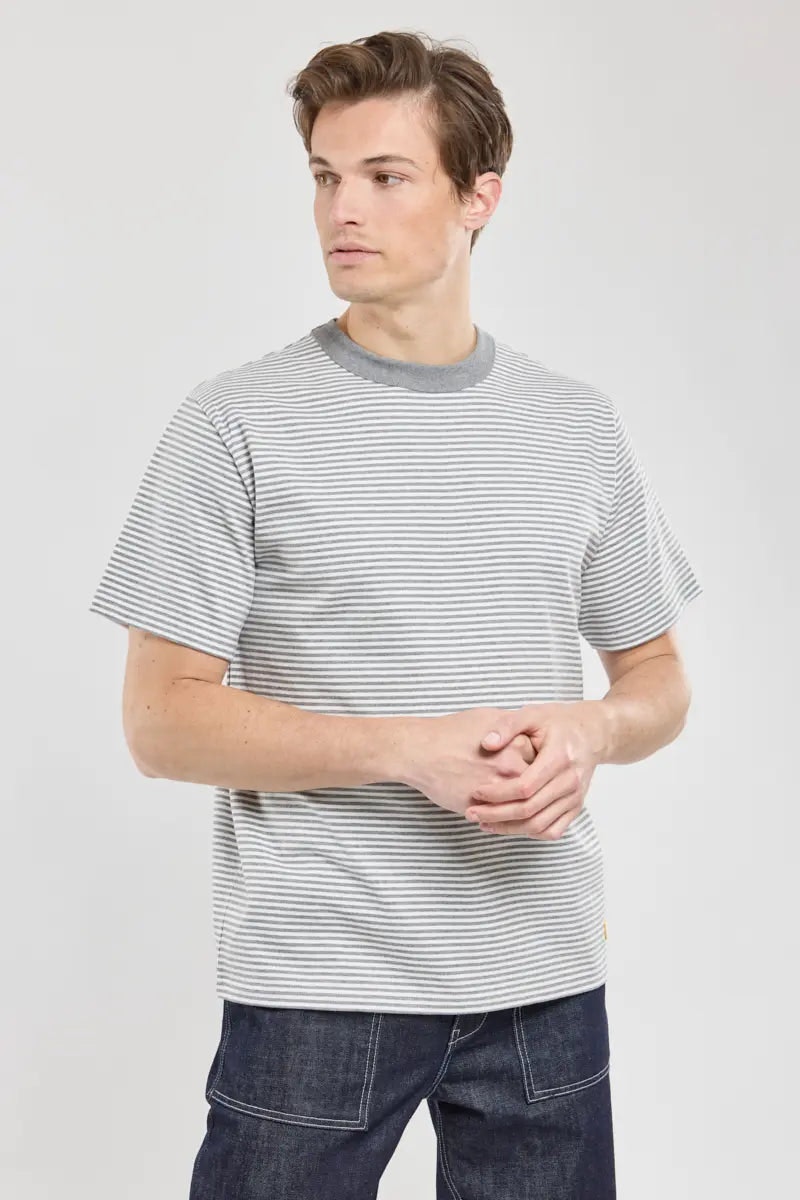 Armor Lux Heritage Striped T-Shirt in Misty Grey & Milk -