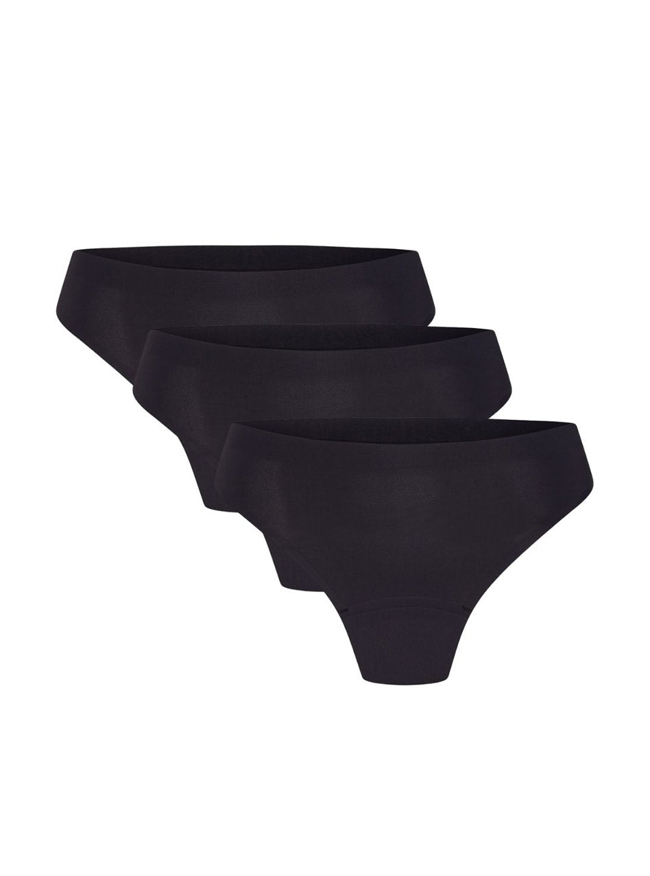 Soft Stretch Seamless Period Underwear Thong Light Absorbency 3 Pack Black -
