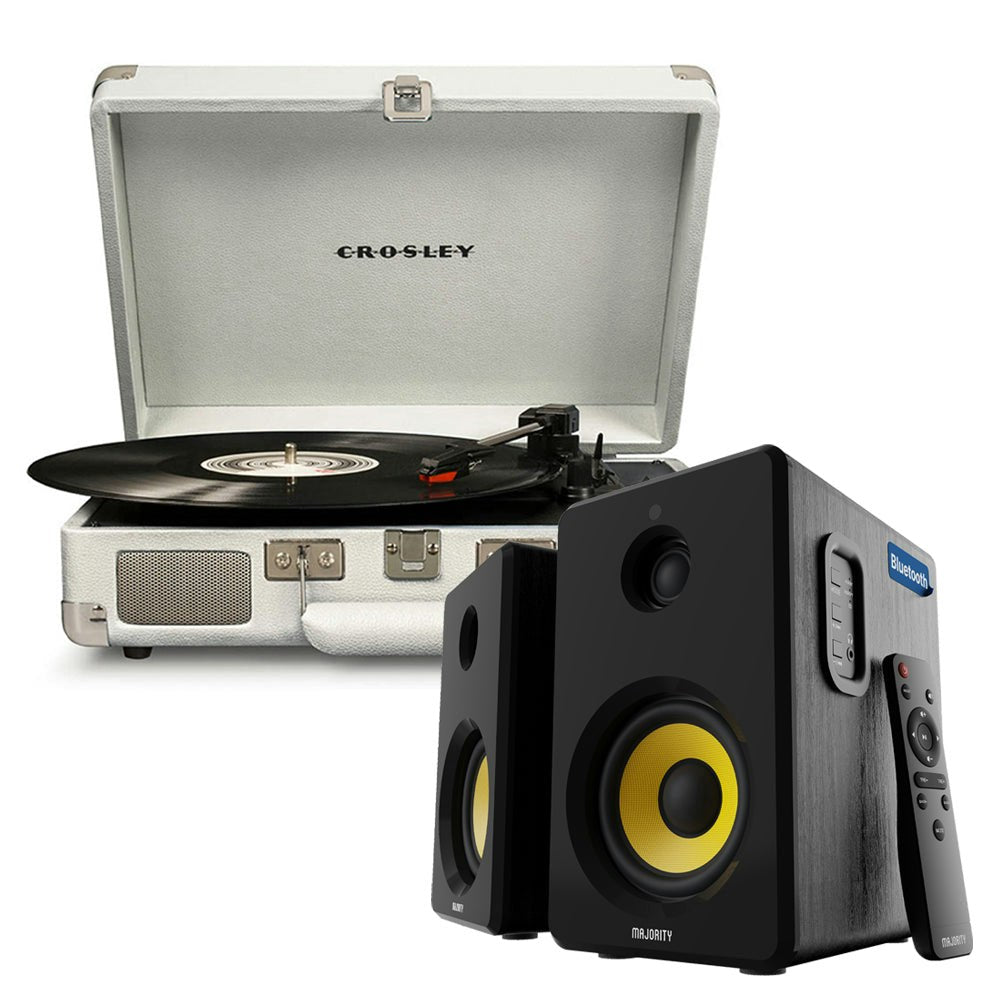 Crosley Cruiser Bluetooth Portable Turntable - White Sands + Bundled Majority D40X Bluetooth Speakers -