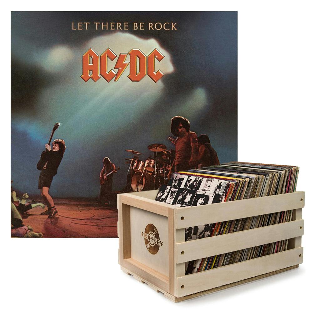 Crosley Record Storage Crate AC/DC Let there Be Rock Vinyl Album Bundle -
