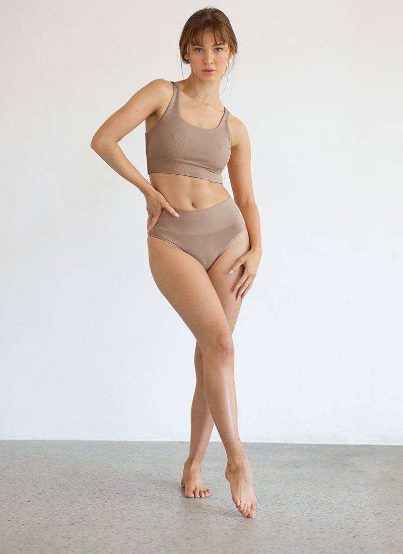 Nicola Long Sleeve Rib Top – Asphalt Contrast -