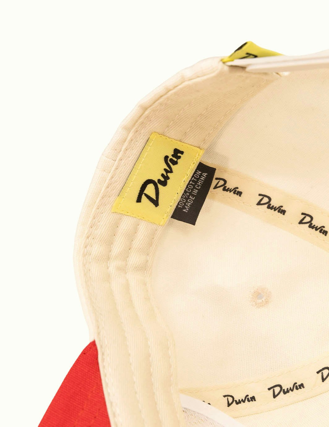 - Duvin branded woven label on back snap