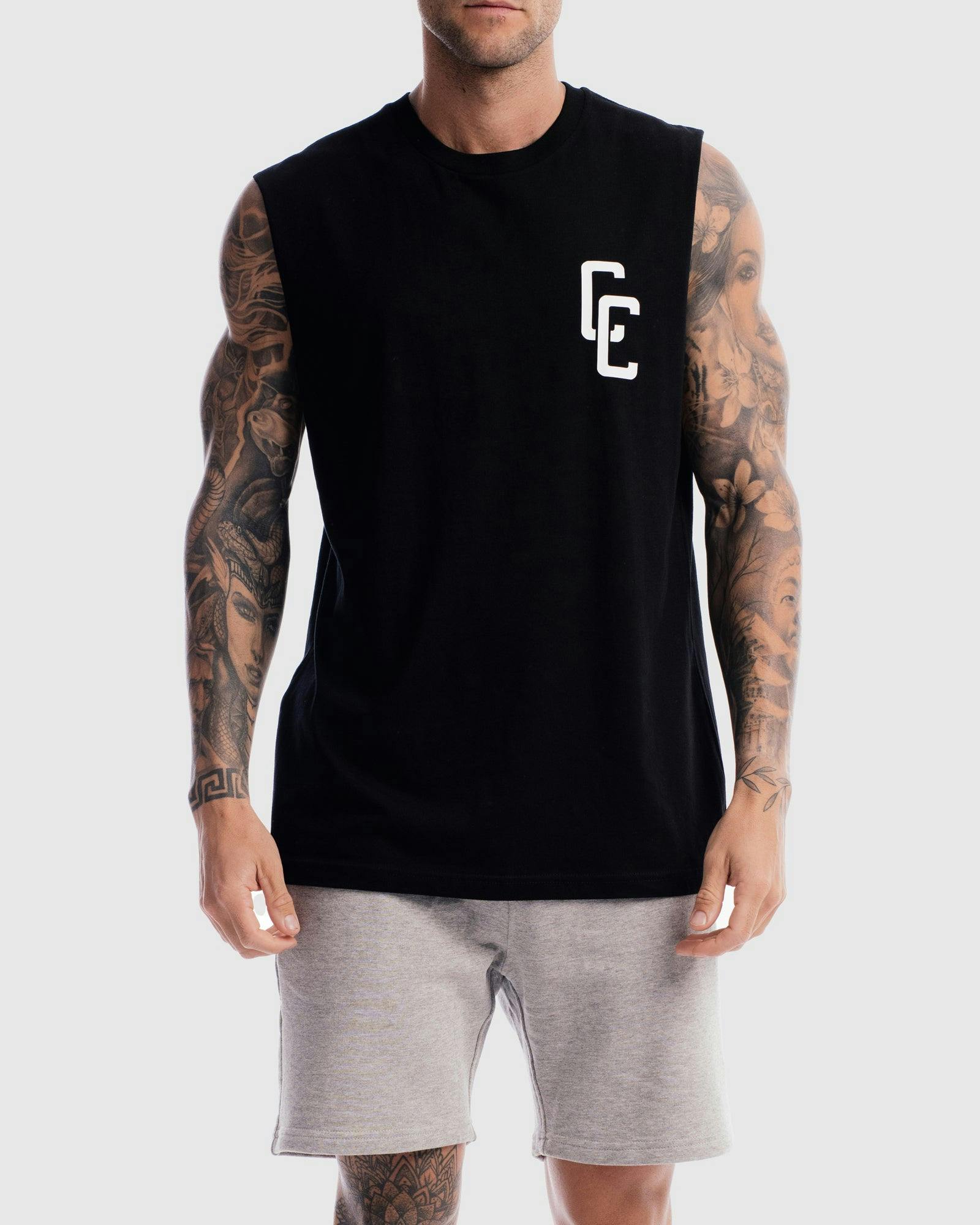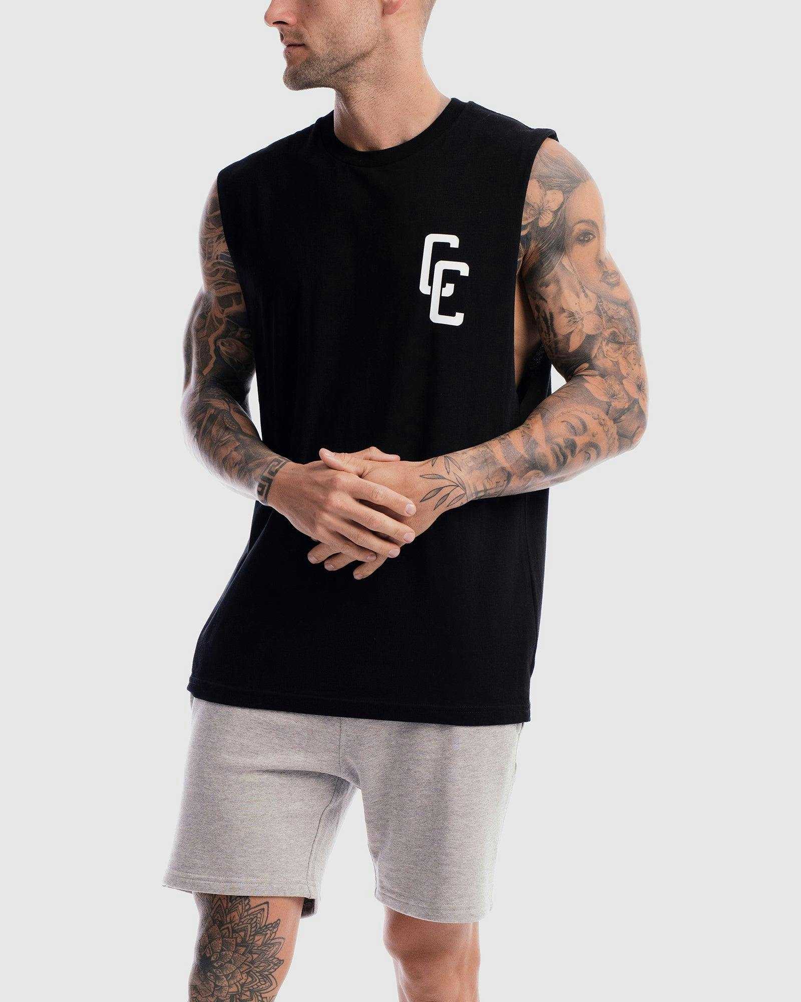 Our model is wearing a size medium Tank. He is 6 ft (182cm) tall with a 37inch (94cm) chest and a 30inch (78cm) waist.