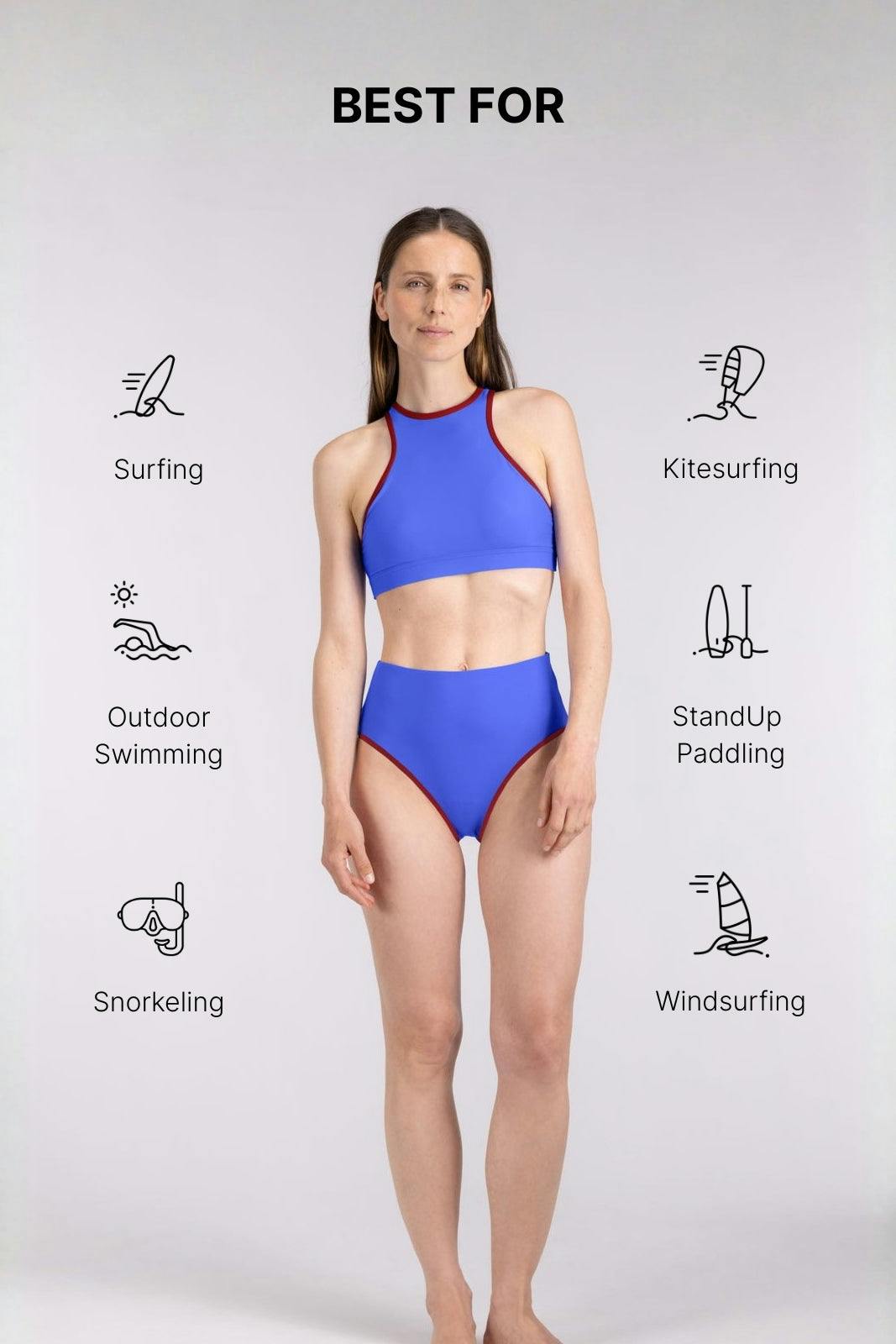 Bikini Bottom High Waist ― Blue / Dark Red