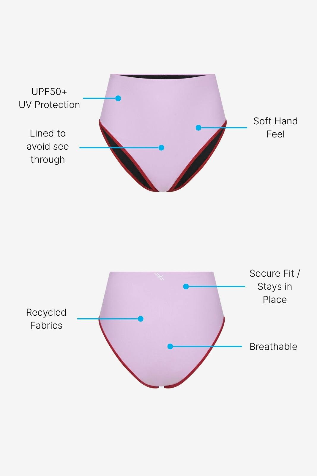 Bikini Bottom High Waist ― Lilac / Red
