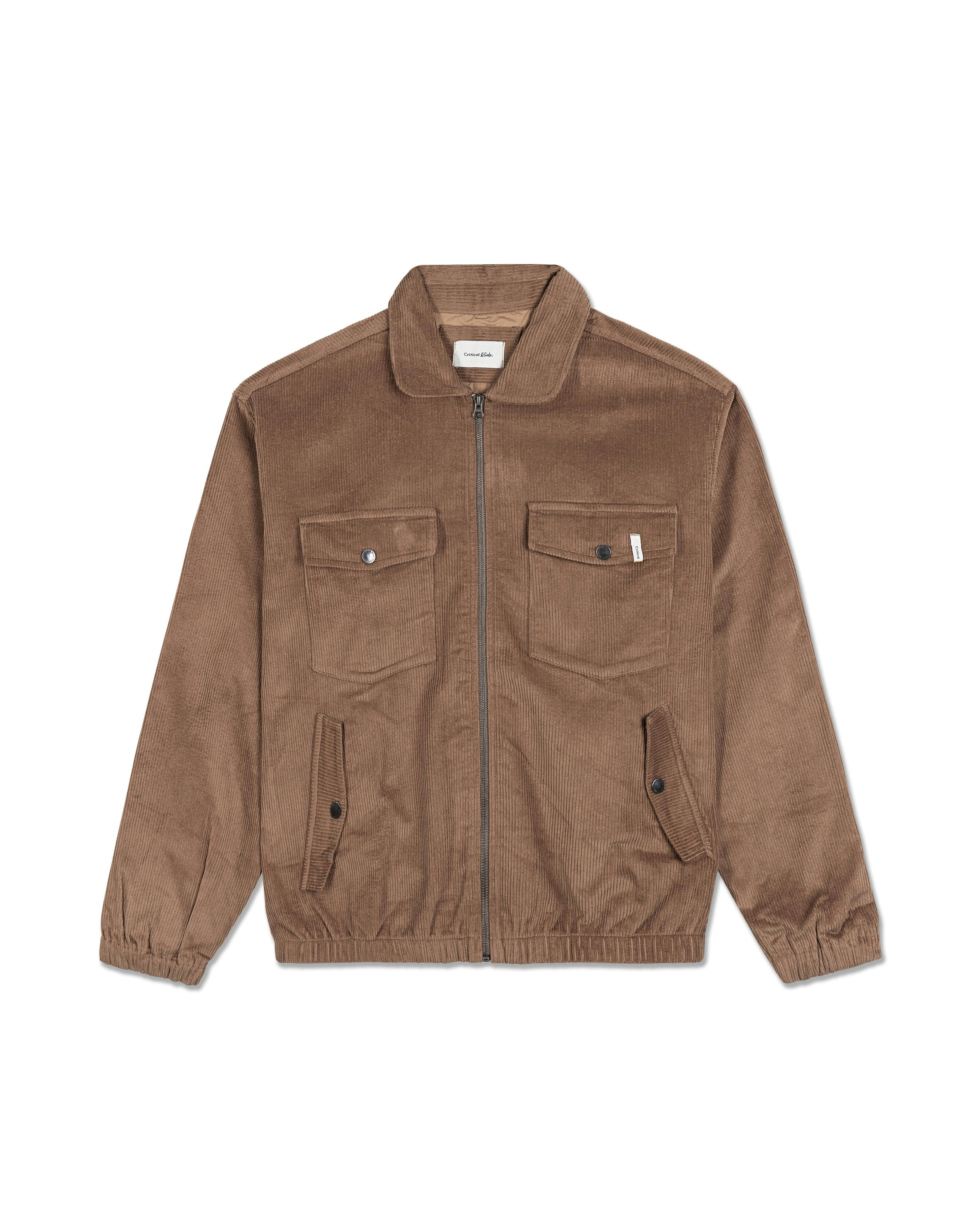 The Blackbird Cord Jacket is made from 8 wale cotton corduroy with a cotton poplin lining. It is slightly off the shoulder and oversize. It's one of our most popular jacket silhouettes.