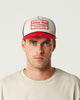 The Business Trucker is a high-profile cap built from twill and mesh. Features an oversized canvas patch embroidered on the front panel. Designed for medium to large heads. Designed in Bondi, Australia.