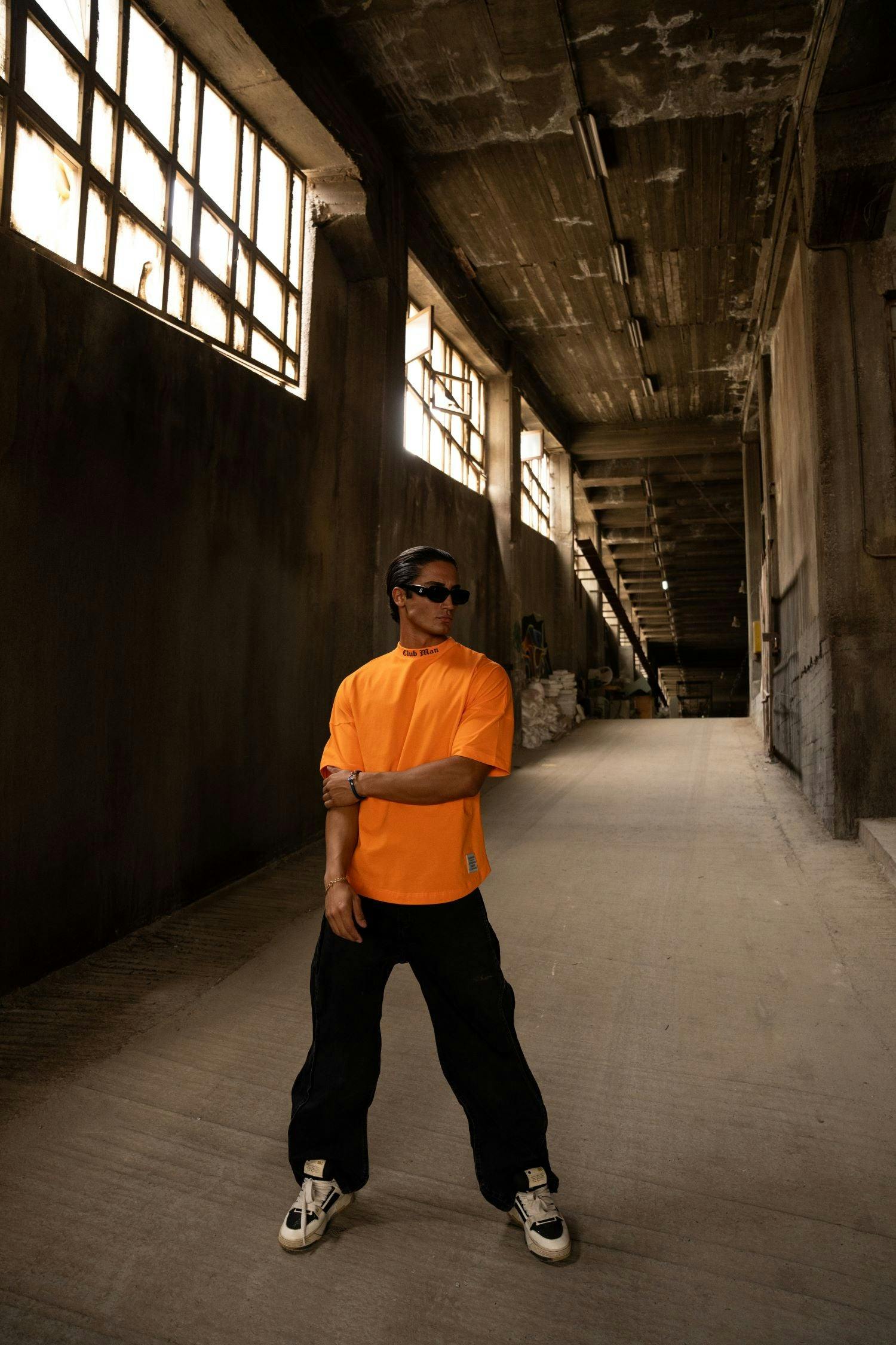 The Clubman Ember Tee brings heat to the streets with its striking orange hue and bold gothic lettering. Designed with an oversized fit for effortless movement, this piece blends vintage influence with modern streetwear energy. Whether you're turning heads or making quiet moves, the structured yet relaxed silhouette keeps you looking sharp without trying too hard. Claim your space—this tee was made to stand out.
