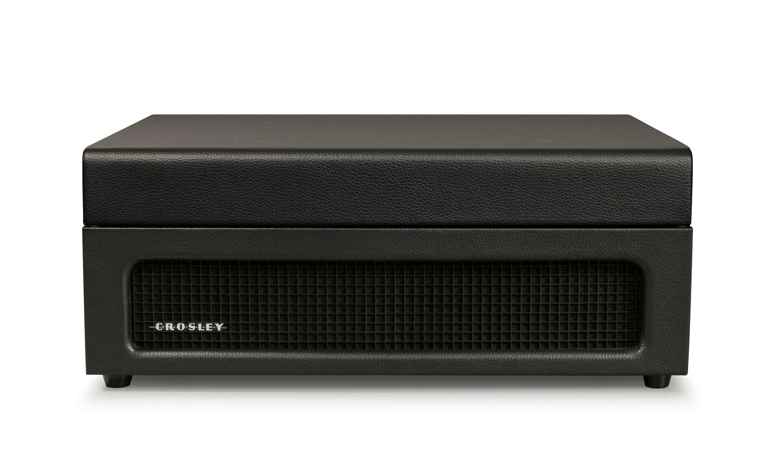 The Crosley Voyager Bluetooth Portable Turntable in black, bundled with the Crosley Record Storage Display Stand, is the perfect way to enjoy analog music in a modern world. With a vintage-inspired design, this lightweight turntable can spin records at 33 1/3, 45, or 78 RPM, or connect wirelessly through Bluetooth to play digital music. Use the pitch control to adjust the speed and connect to your existing sound system or bigger speakers through RCA outputs for an enhanced sound experience. Need a place to display your records? The minimalist Record Storage and Display Stand, made of solid wood, holds 20-30 7” or 12” records and requires minimal assembly. This stand is the perfect way to browse and display your record collection with ease.