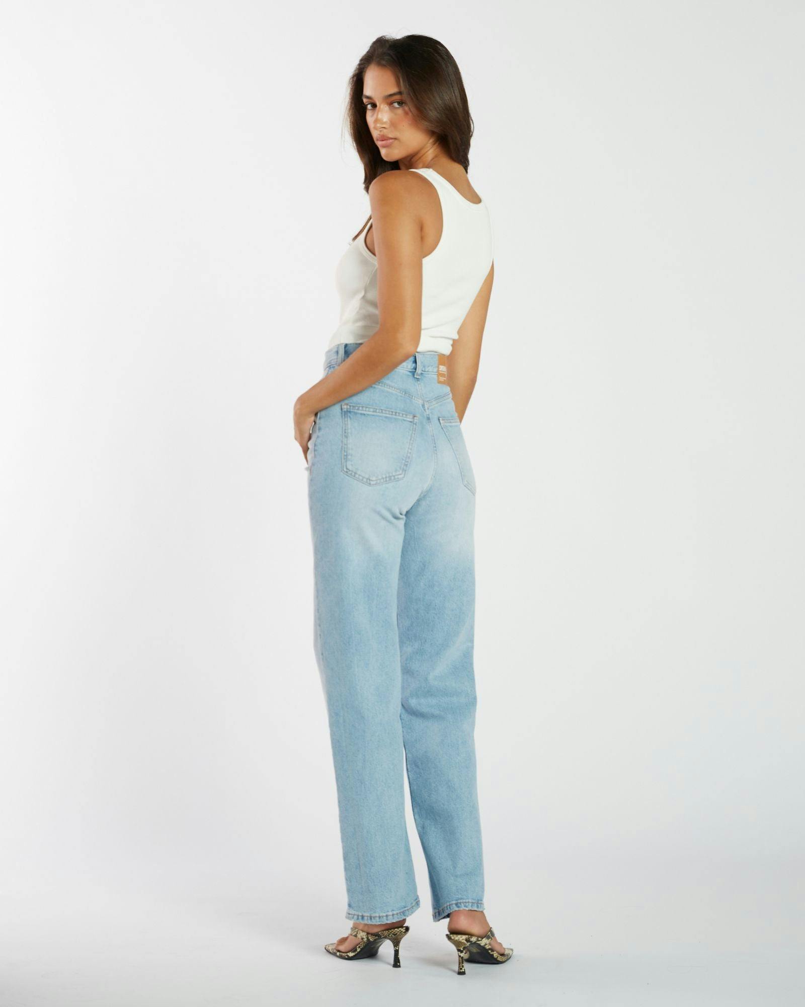 New in—Echo, this well-loved icon, just got a groundbreaking update. Now with a touch of stretch for comfort while keeping its signature rigid look, flattering sky-high rise that cinches the waist and a classic straight leg.