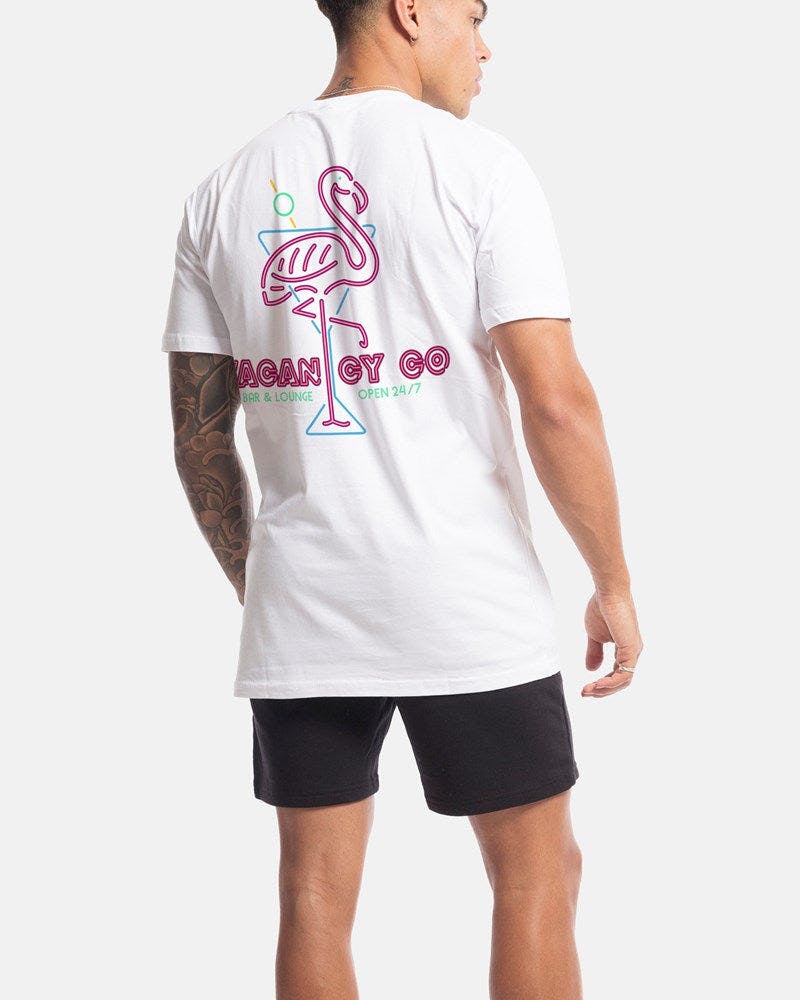 This style encompasses the ethos of the brand. Combining a classic inspired design with a well crafted construction the Flamingo Club Tee by Vacancy Co. will add a bit of fun and a new favourite to your wardrobe.