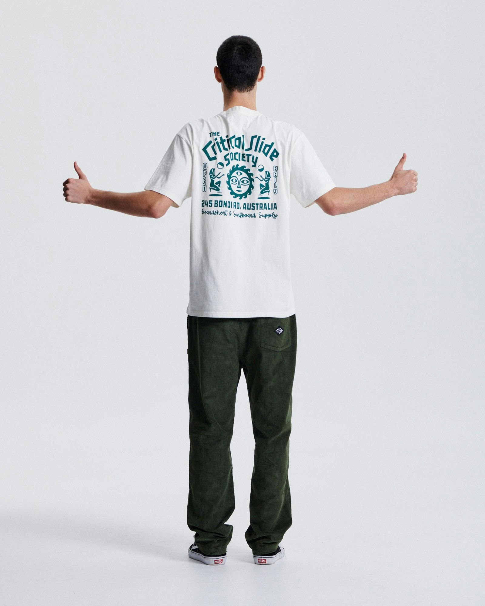 The Futures Tee is a collaboration with Paul Tooth, featuring a regular fit with a slightly oversized feel. It sits off-the-shoulder with a longer body length, crafted from our signature 230gsm cotton singles for a premium hand. Pre-washed twice to keep shrinkage low. Take your regular size for the intended fit.