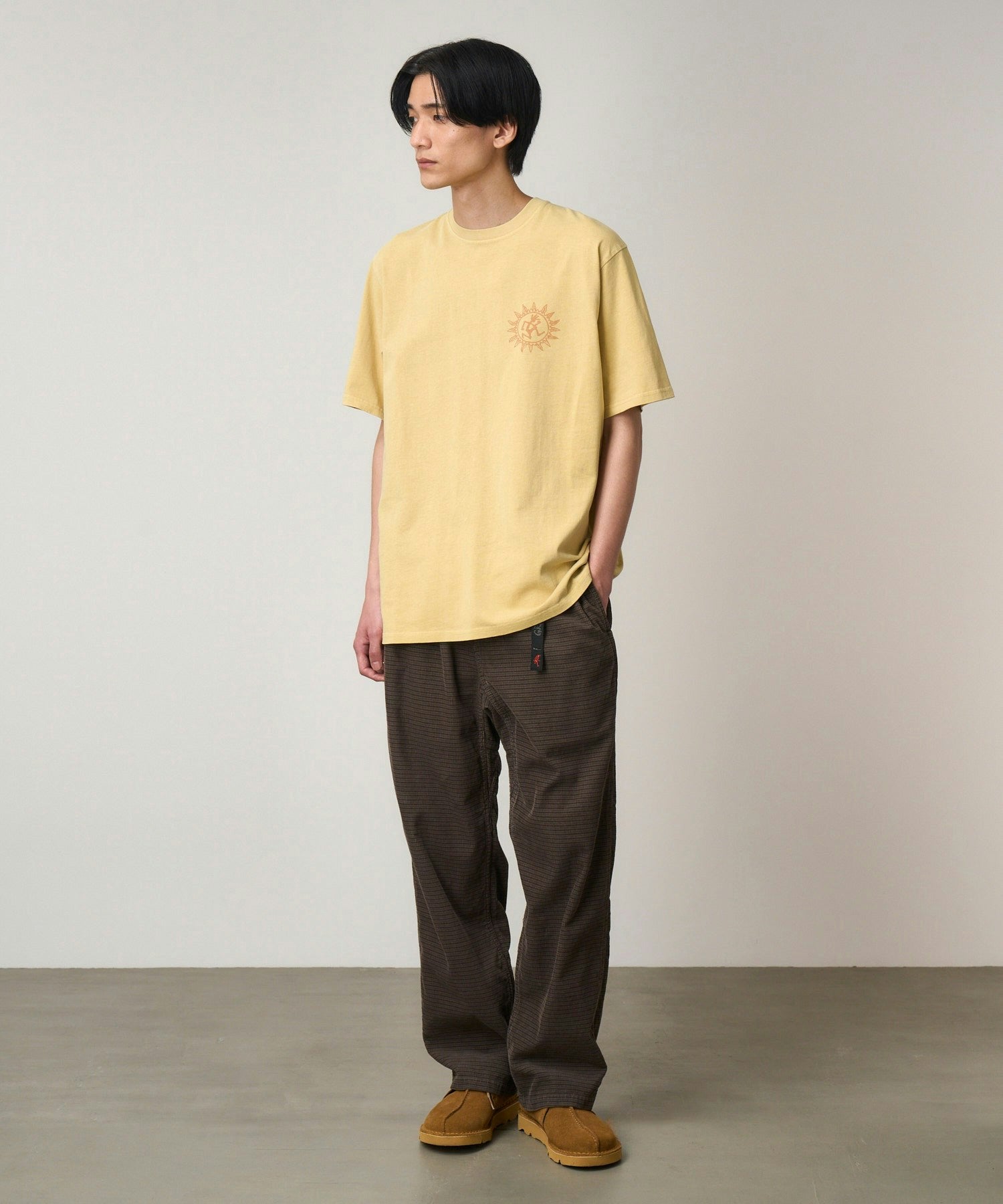 Tried-and-tested eco cotton t-shirt from Gramicci. Made from mid-weight dry-touch eco cotton, it’s the perfect year-round tee that works just as well on a summer day with a pair of shorts as it does stuffed under loads of layers come winter. Nice graphic too, with the Sun Logo motif.
