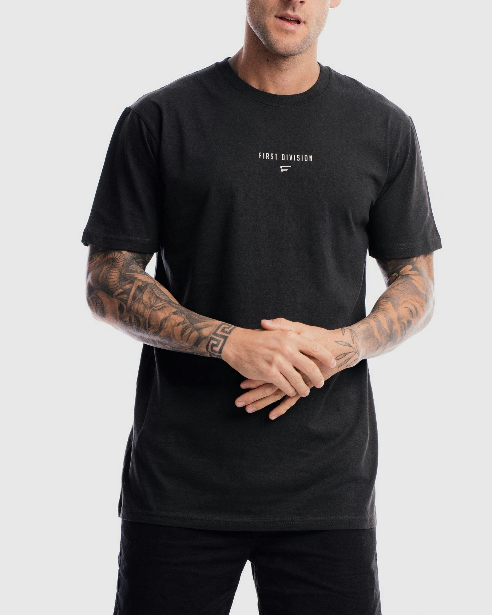 The Grand Stand Centre Tee by First Division through its premium lightweight breathable cotton composition perfectly blends function with fashion. Define your status on the street or while working out with this clasic piece. Styled to be a clasic addition to any wardrobe.