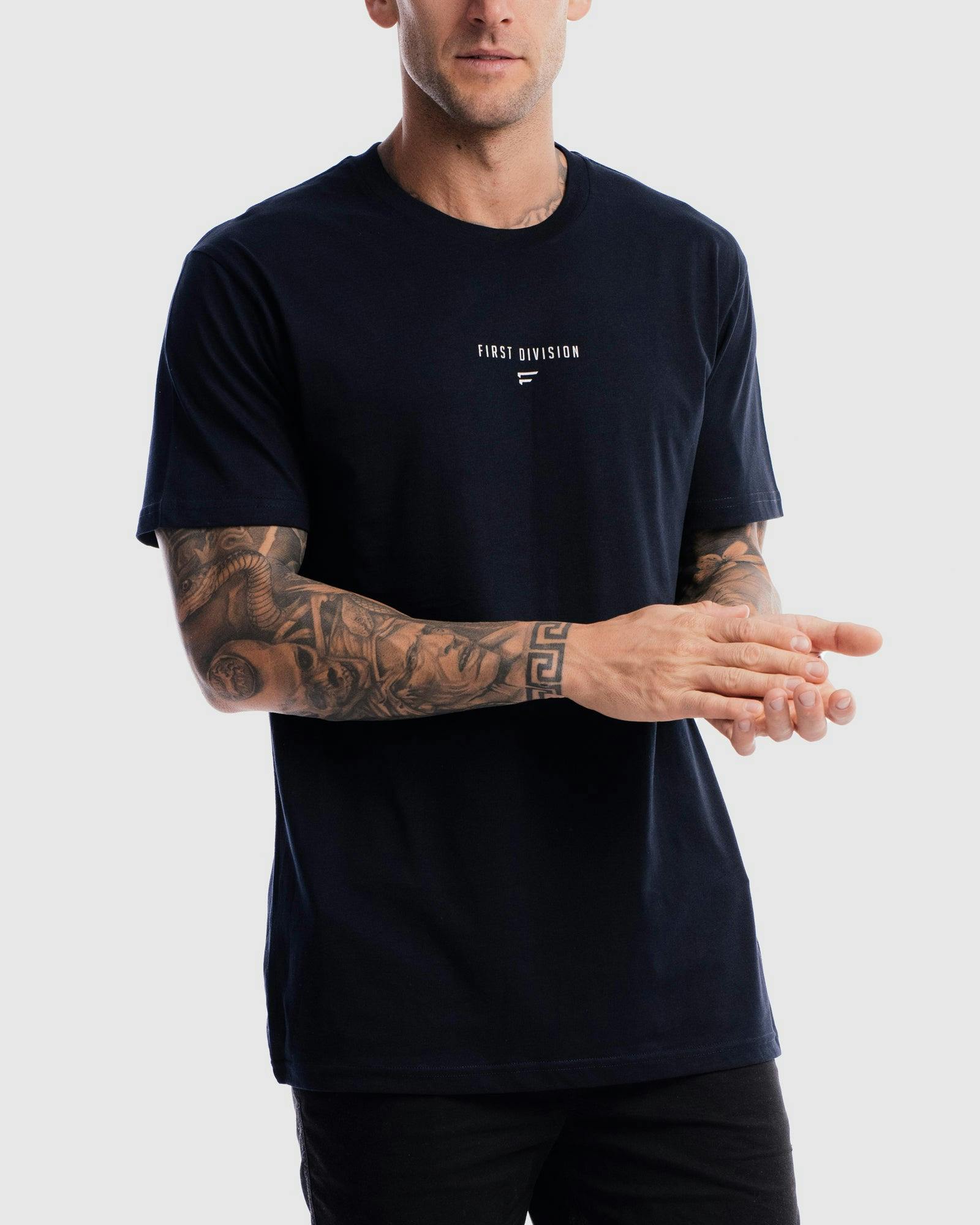 The Grand Stand Centre Tee by First Division through its premium lightweight breathable cotton composition perfectly blends function with fashion. Define your status on the street or while working out with this clasic piece. Styled to be a clasic addition to any wardrobe.