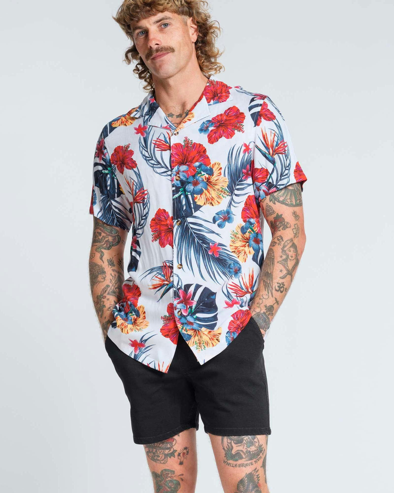The Hibiscus Rayon Shirt by Vacancy Co, crafted from premium 100% Rayon, is designed for those with a fascination for fun. For the chillers, spillers, and summer lovers. This relaxed fit shirt will have you frothing on summer vibes and ice-cold beers this summer. From Beer Garden to BBQ to Music Festival this shirt will be an instant hit. Pair with matching Vacancy Co. swim shorts for the ultimate summer vibe.