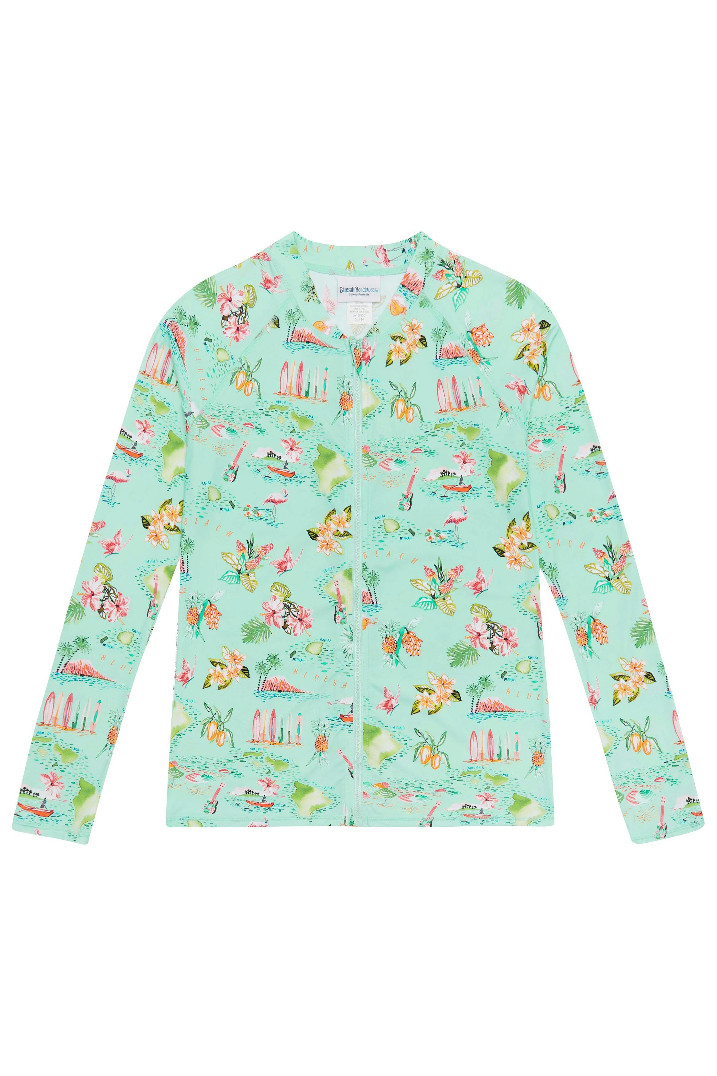 Front zip which makes it easy to wear and long sleeves for maximum sun protection.