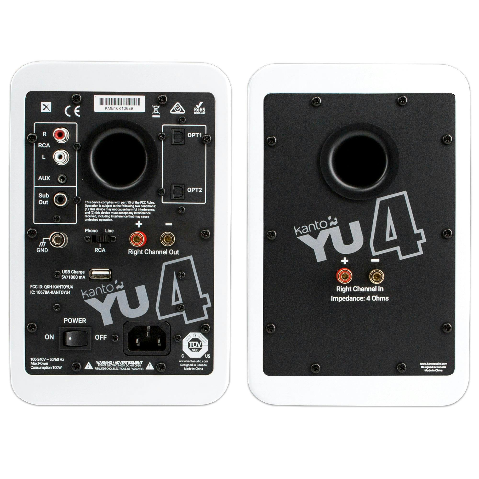 Kanto YU4 140W Powered Bookshelf Speakers with Bluetooth® and Phono Preamp - Pair, Matte White - Music is made to be shared. Whether you’re hanging out with friends or kicking it solo, YU4 ensures you’re always in good company. Producing 140W peak power, its Class D amplifier effortlessly fills your room with rich, spacious sound. Carefully designed 4” Kevlar® drivers and 1” silk dome tweeters faithfully reproduce your favourite tunes, letting you enjoy them to their fullest. Packed with connectivity, YU4 makes it easy to throw on your latest vinyl with a built-in phono preamp, or sit back and stream your carefully curated playlist via Bluetooth. Crystal-clear, detailed sound for all to enjoy.