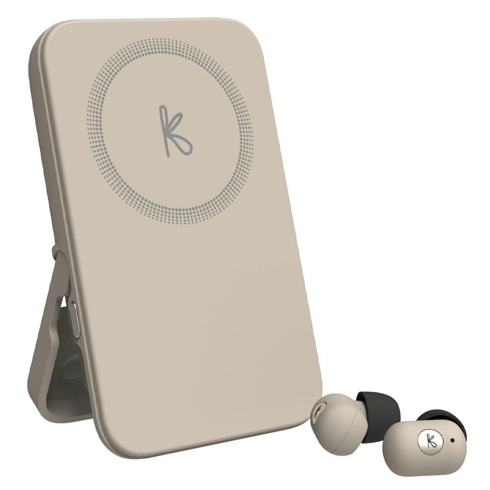 Kreafunk Tocharge Go Powerbank + Earbuds - Ivory Sand - toCHARGE GO Power Bank Meets Everyday Essentials. toCHARGE GO is more than just a power bank it's a smart, compact 2-in-1 solution that combines wireless charging with built-in earbuds for everyday convenience and style. Designed with portability in mind, this all-in-one gadget features wireless charging compatibility for your phone, speaker, or headphones, and a magnetic snap-on feature for iPhone 12, 12 Pro, and newer models. Crafted from 100% GRS-certified recycled plastic, it's as sustainable as it is functional.