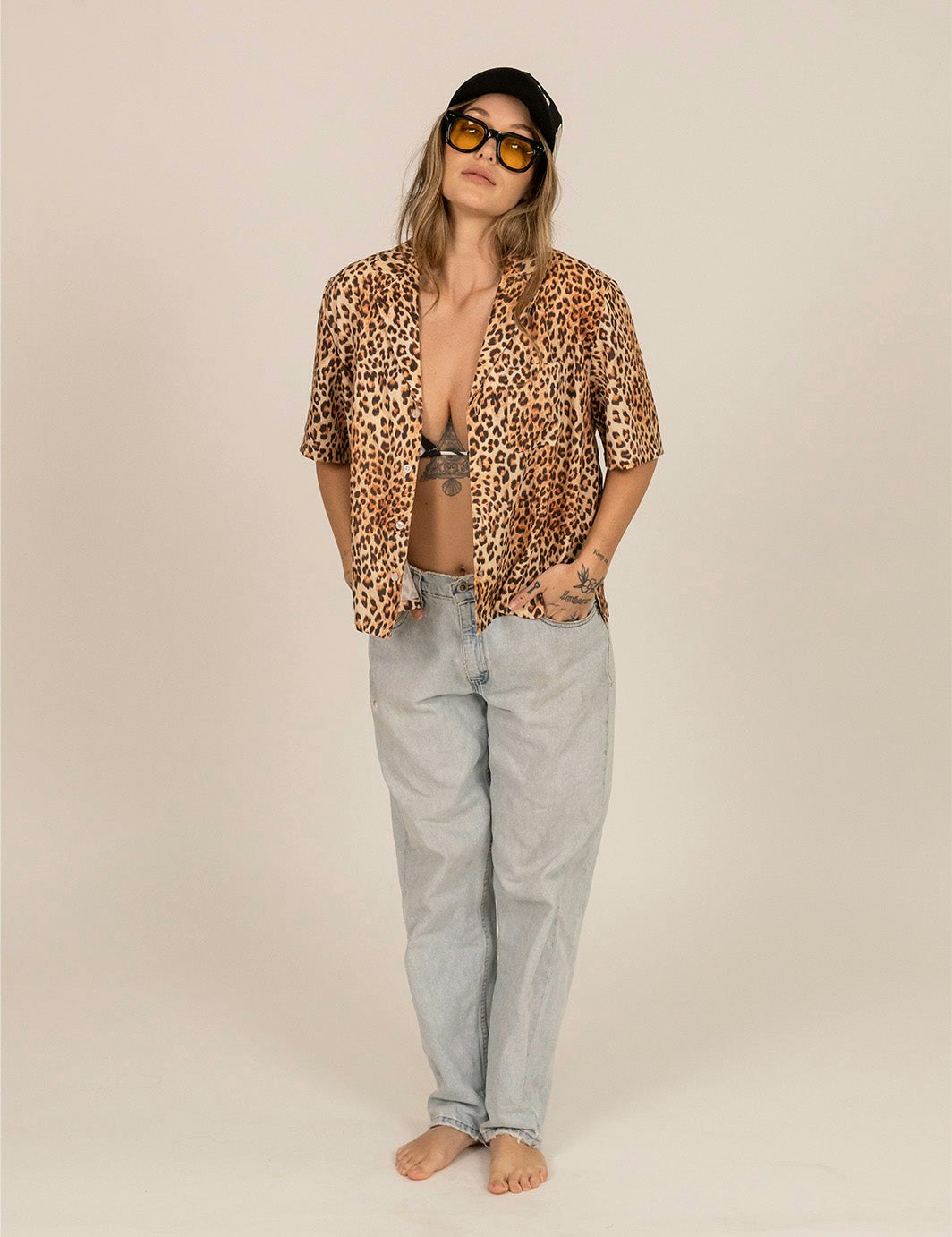 Jo (studio + lifestyle model) : 5'4" [34" Hips, 25" Waist] Wearing sizes (L Bikini Top, S Bikini Bottom, S Cabana Pants, S Cabana Shirt, S Tank, S Nylon Shorts, 26 Work Pants & 26 Walk Shorts)