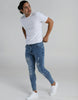 The Mayfair Classic in Ash Blue in a ripped style are our signature comfort fit with a high-end finish. Made from a denim cross elastane material, the Mayfair Jeans' fit allows for maximum comfort and breathability whilst ensuring a sleek, tapered ankle fit. Rips are located between the thigh and knee.