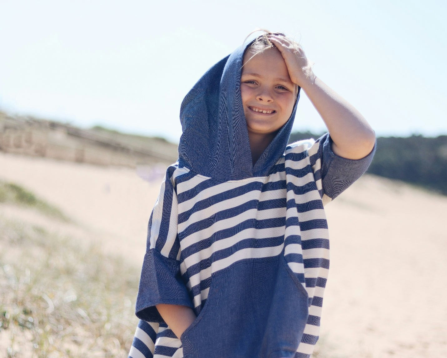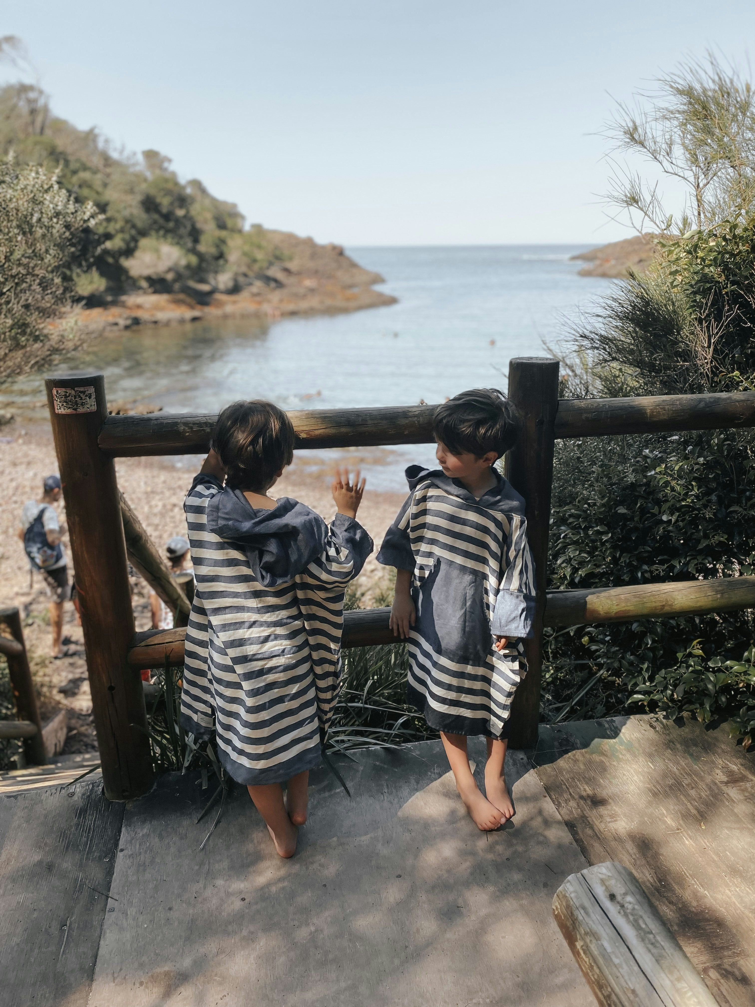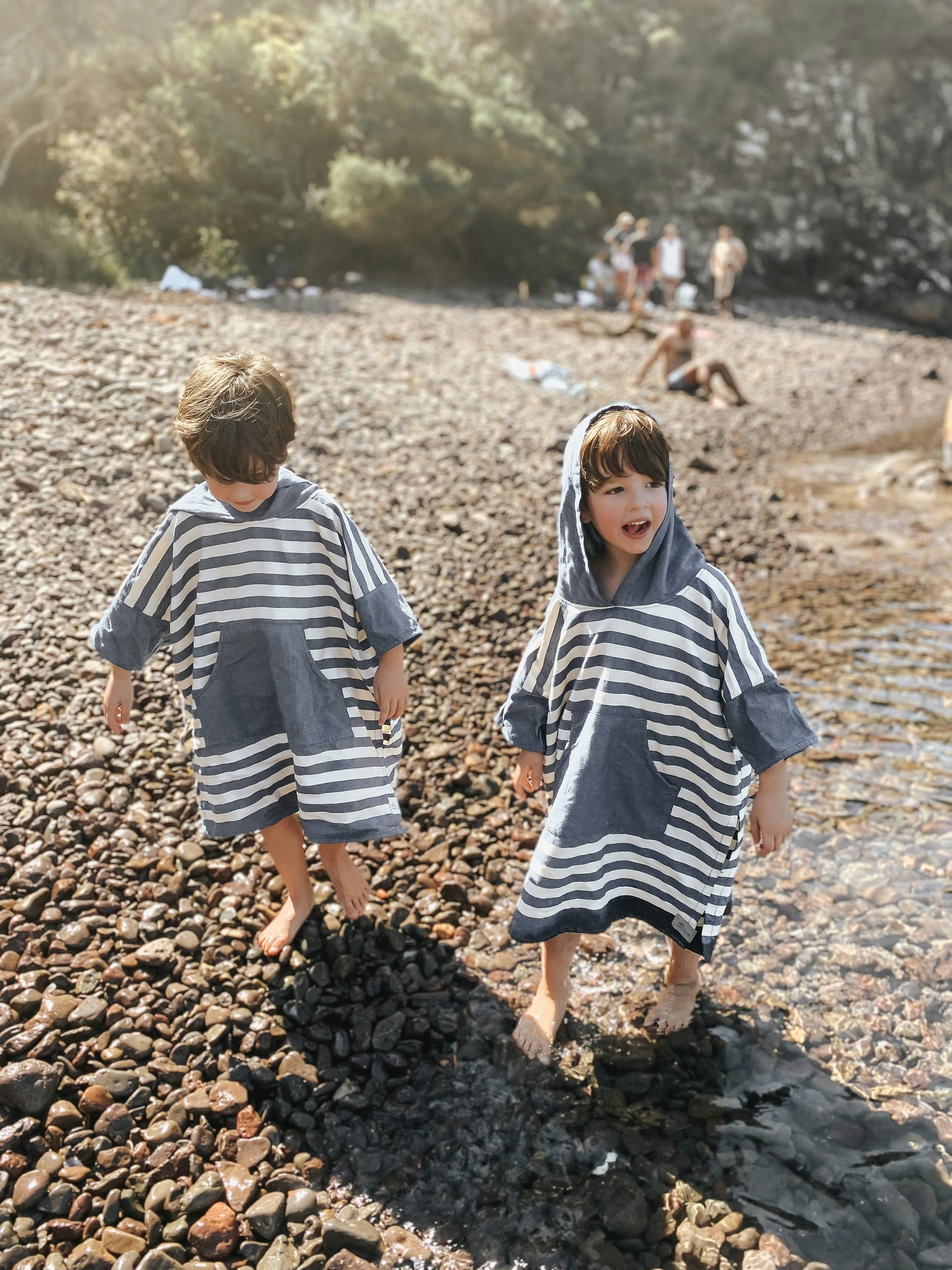 Light weight, absorbent and comfortable, the Ocean Blue Stripe Kids Poncho is the perfect throw on before or after a swim while providing comfortable protection from the sun