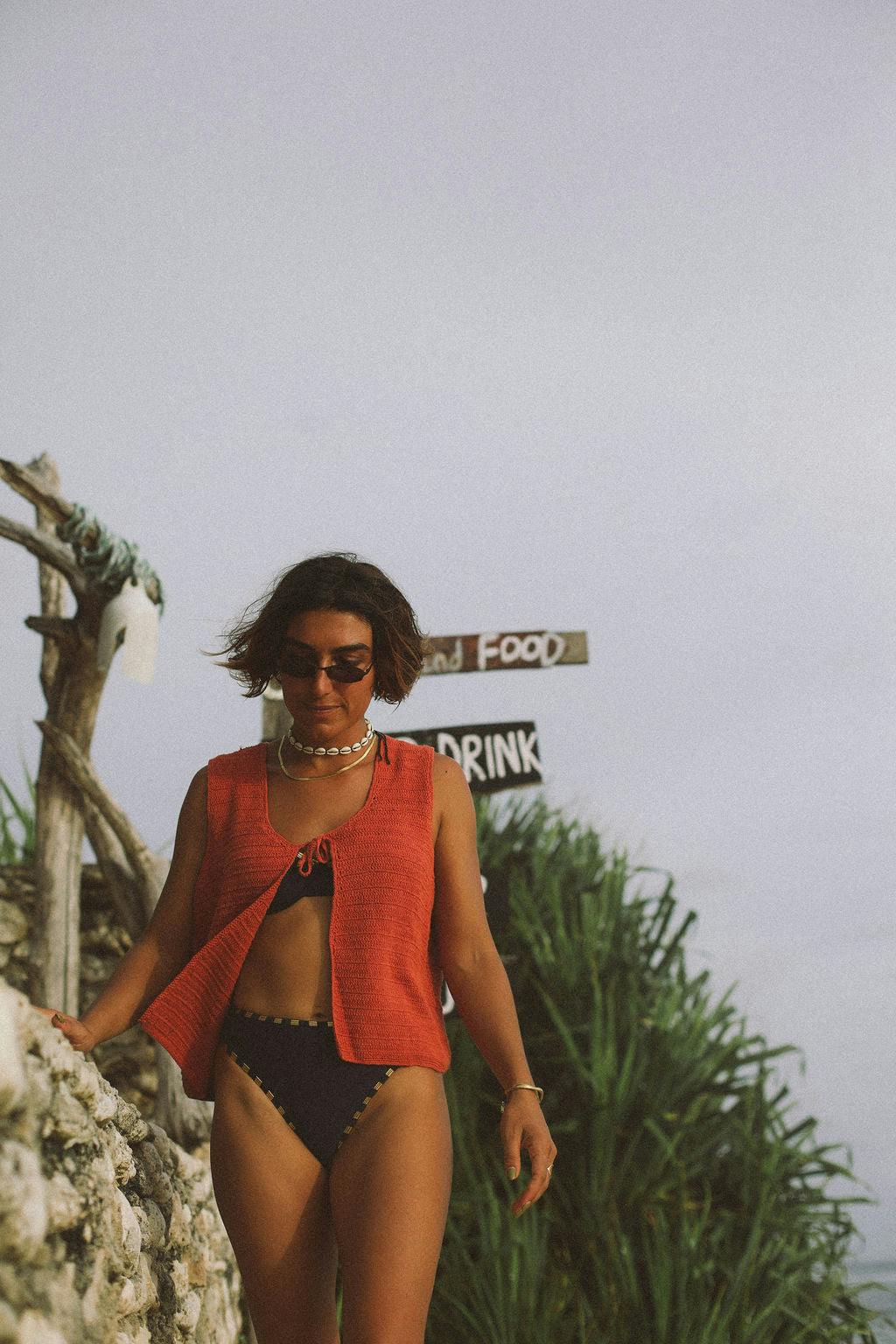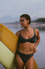 Introducing a fresh fit to the Atmosea swim collection, the Pacific Bikini Brief. This high-waisted, high-cut style channels retro summer energy with a silhouette reminiscent of 80s swimwear. Designed to flatter and elongate the leg, it features gold and navy stripe binding and our signature Atmosea golden embroidery. Made from buttery-soft recycled lycra.