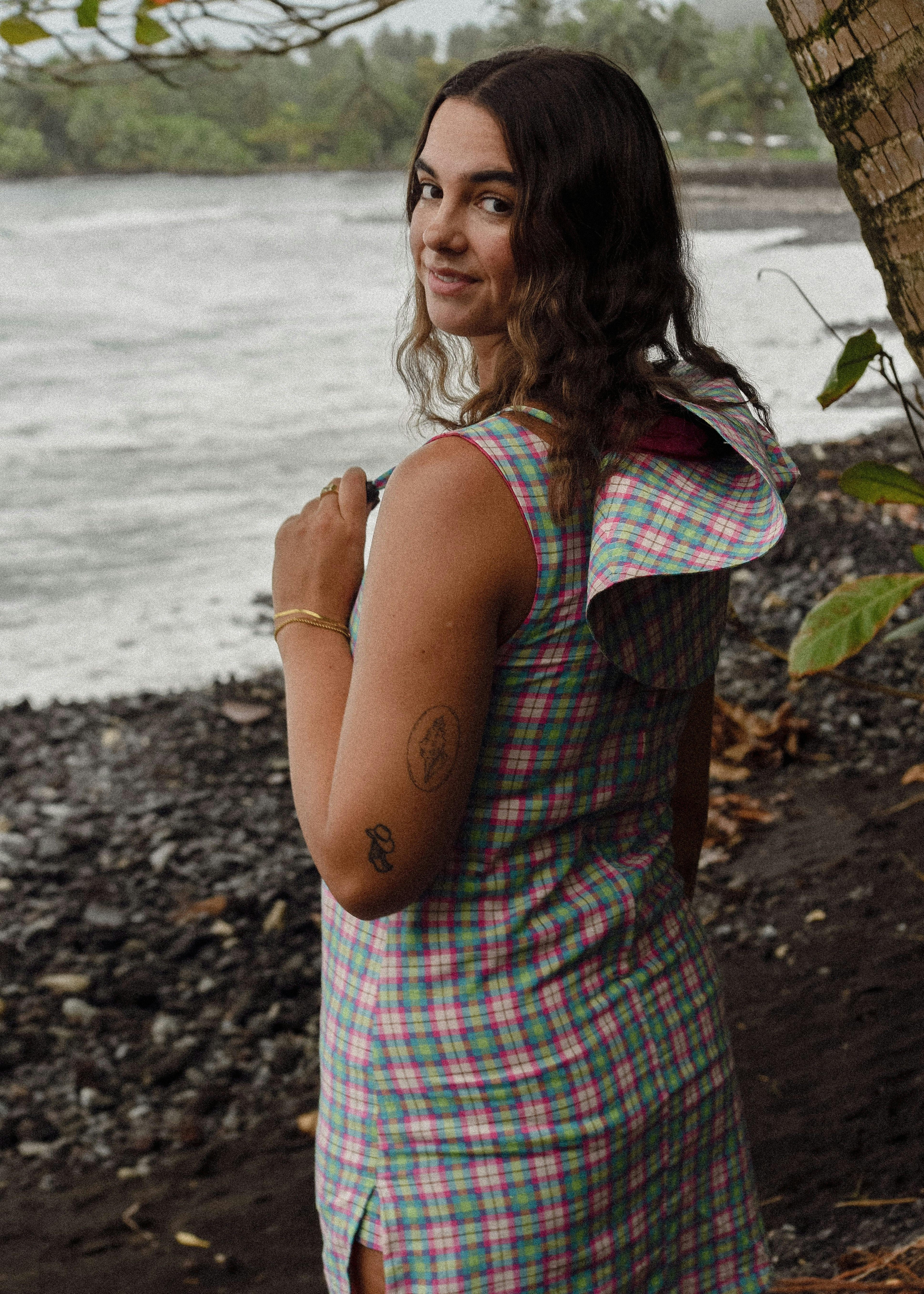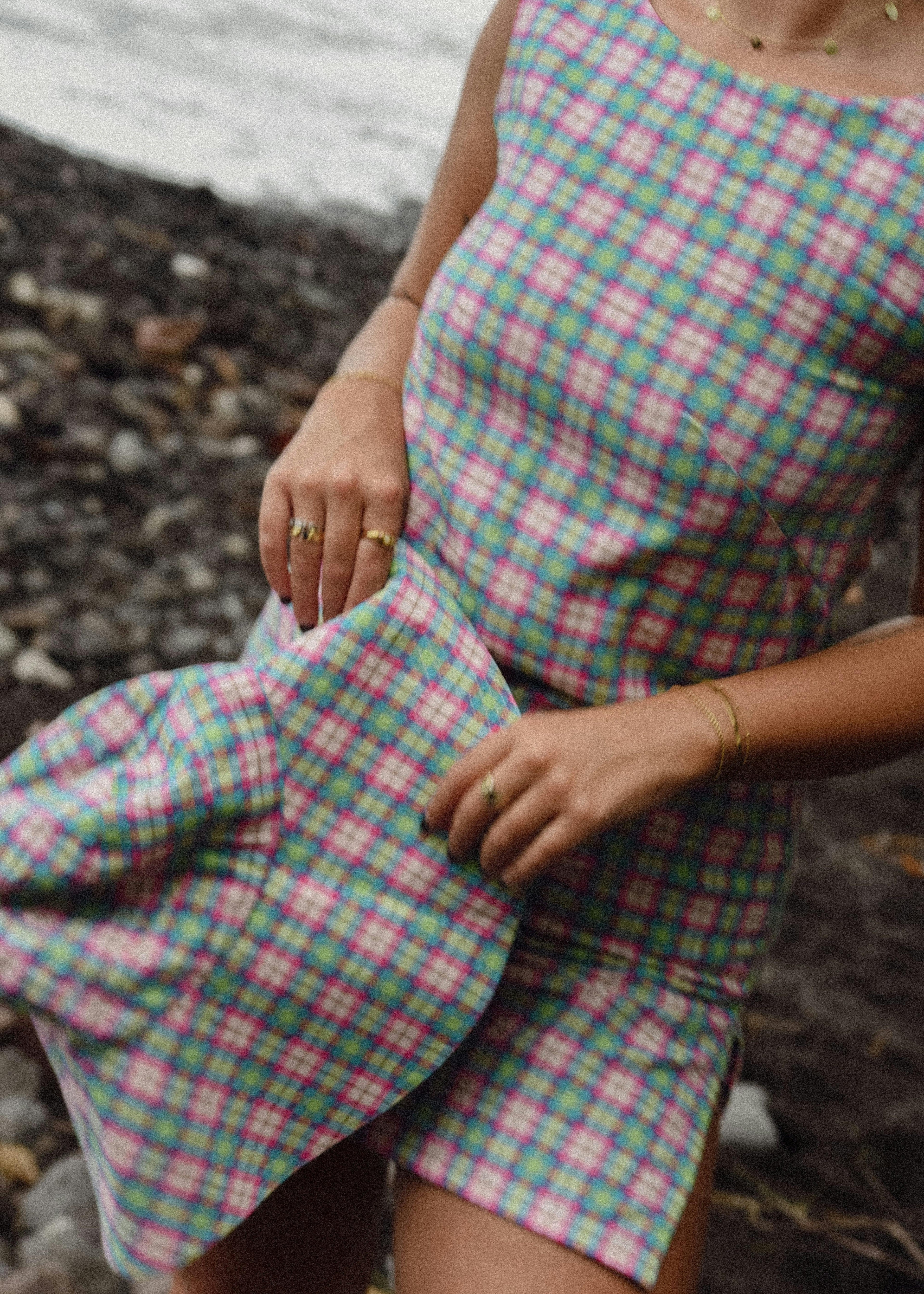 A sun-safe essential, the Play-Hat is your ultimate sidekick for summer adventures. Featuring our hand-drawn Fika gingham print, this wide-brim hat offers maximum sun protection with a drawcord chin strap for the perfect fit — whether you're playing in the waves or lounging in the shade.