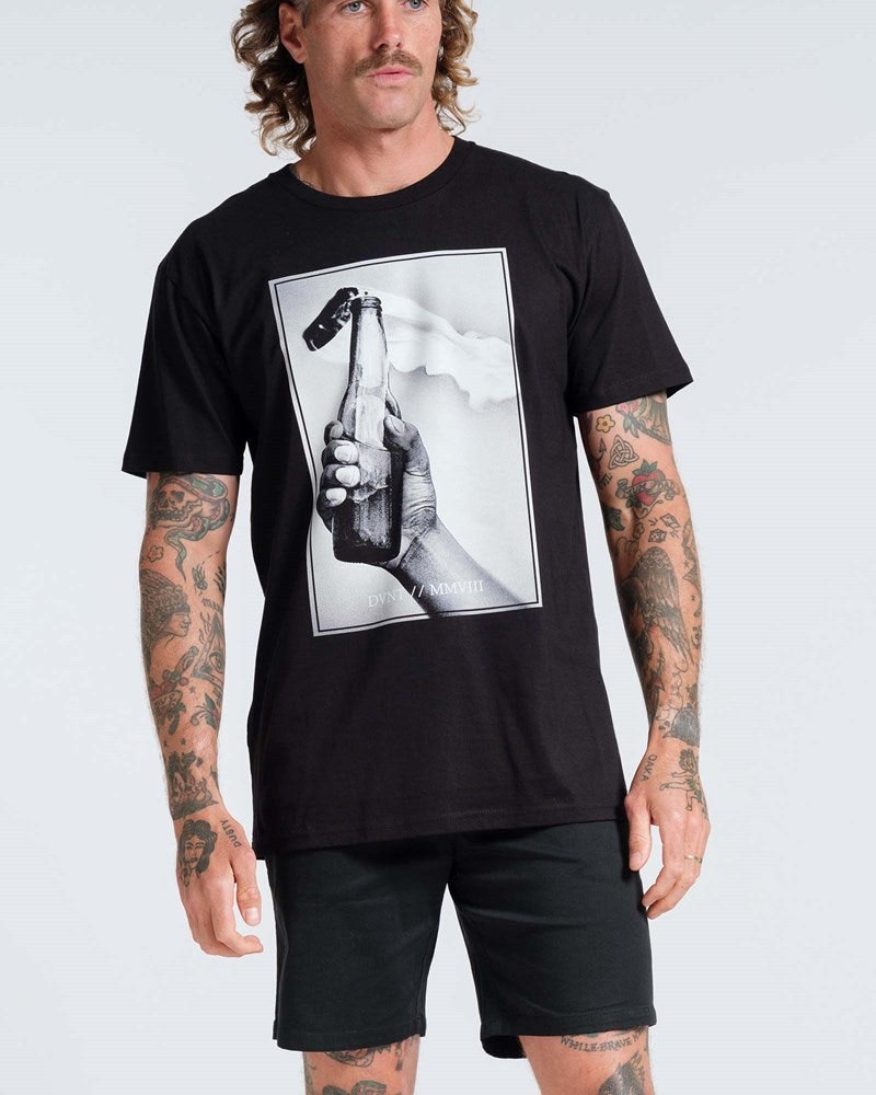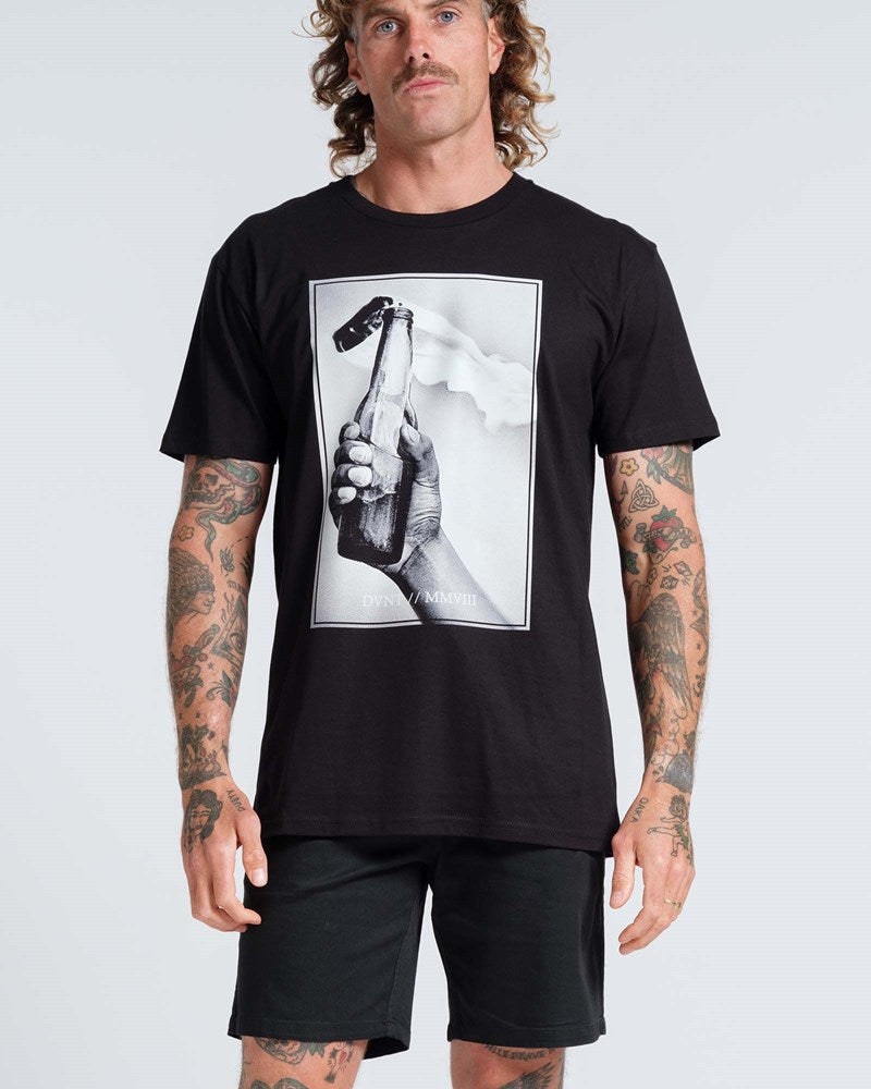 DVNT Clothings Propaganda Tee, this crew neck t-shirt features the Propaganda logo on the front. This bold graphic tee, symbolizes freedom and Youth culture.