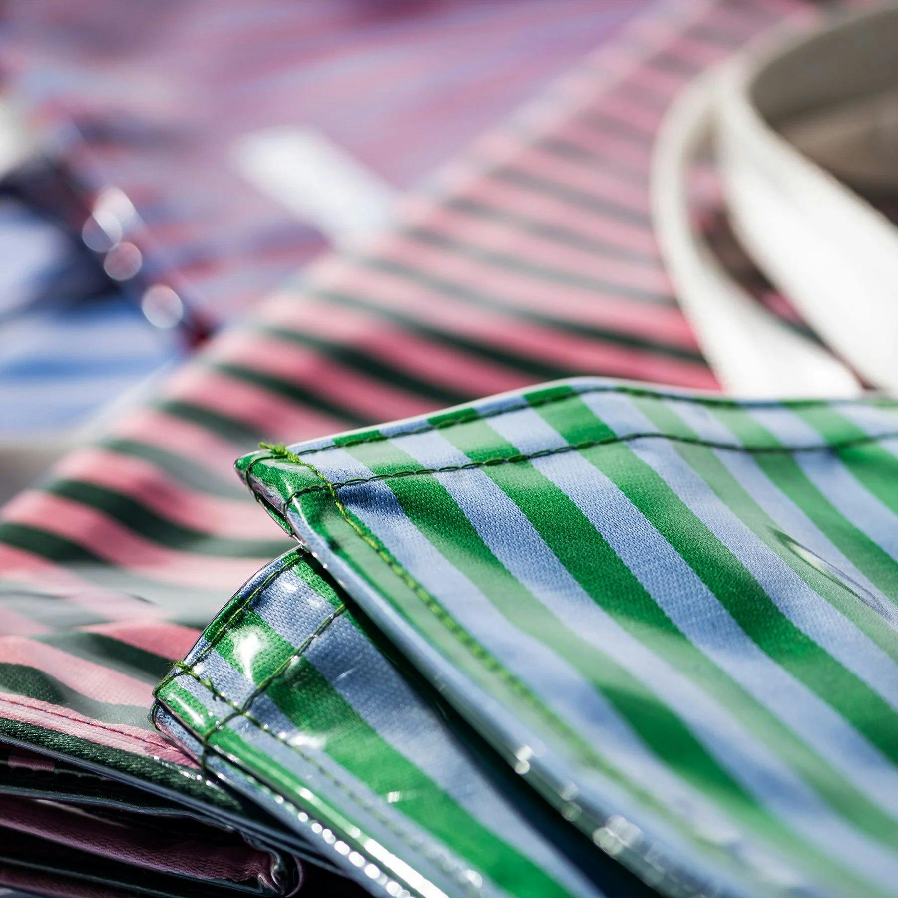 The Covered School Tie Fabric Market Bag, crafted from dead-stock tie fabric in India and lined with PVC for water resistance, combines contemporary design with practical functionality. Ideal for city strolls, market visits, office days, or casual weekends, it offers ample space for essentials, complementing any outfit.