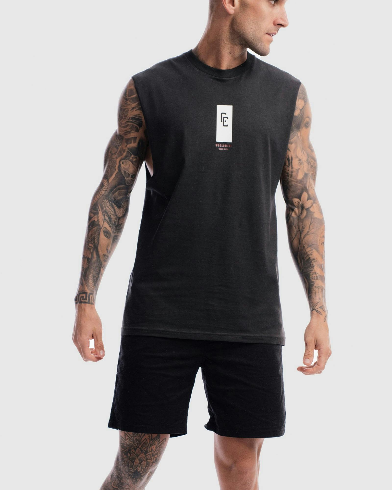 Our model is wearing a size Medium Tank, and usually takes a size medium. He is 6 ft (182cm) tall with a 37inch (94cm) chest and a 30inch (78cm) waist.
