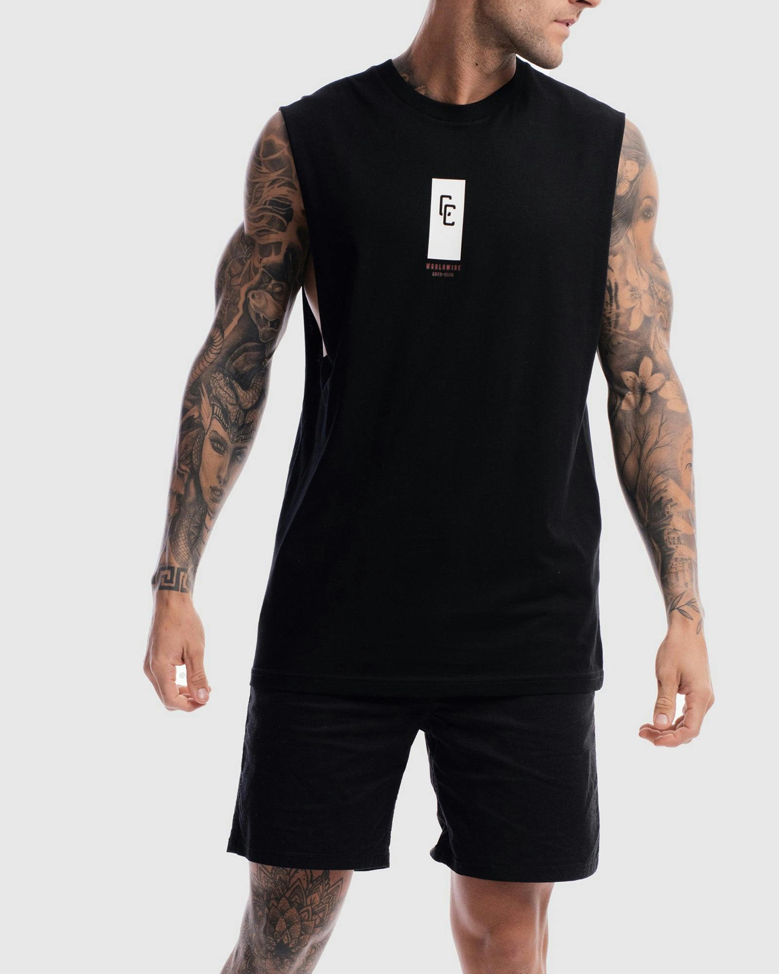 Our model is wearing a size Medium Tank, and usually takes a size medium. He is 6 ft (182cm) tall with a 37inch (94cm) chest and a 30inch (78cm) waist.