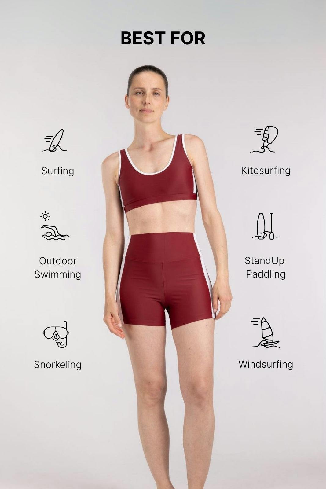 Athletic shorts designed for multi-sports and made from eco-friendly technical fabric engineered for chlorine resistance and sun protection. With its lightweight design, supple feel, and lack of metal parts, they are also your ultimate wetsuit companion.