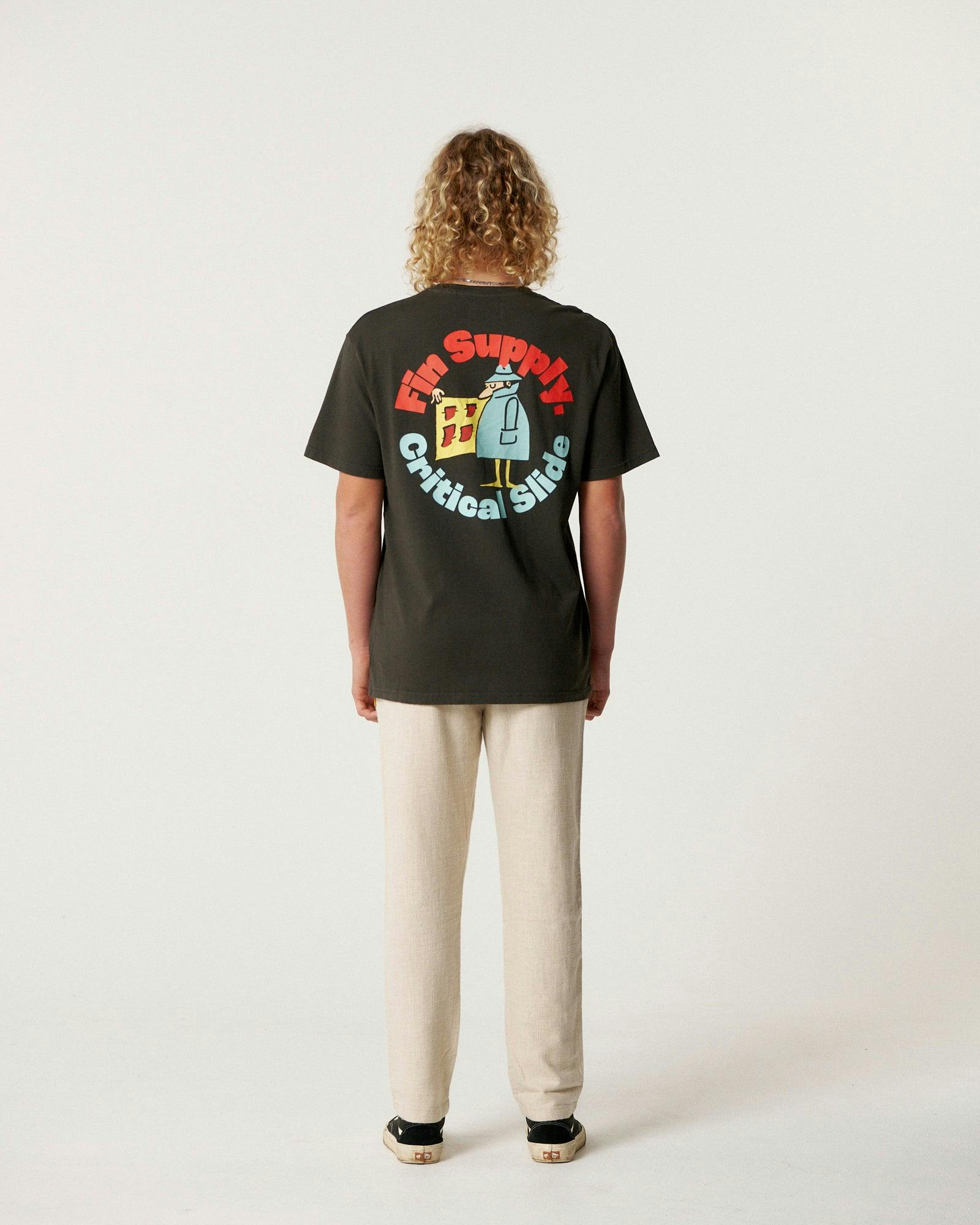 The Supply Tee is made from 230gsm cotton singles, washed before and after make to keep shrinkage at an all-time low. Cut in our regular fit tee—which still runs slightly oversized and drops off the shoulder. Our guy is 6'1" and wearing a Large.