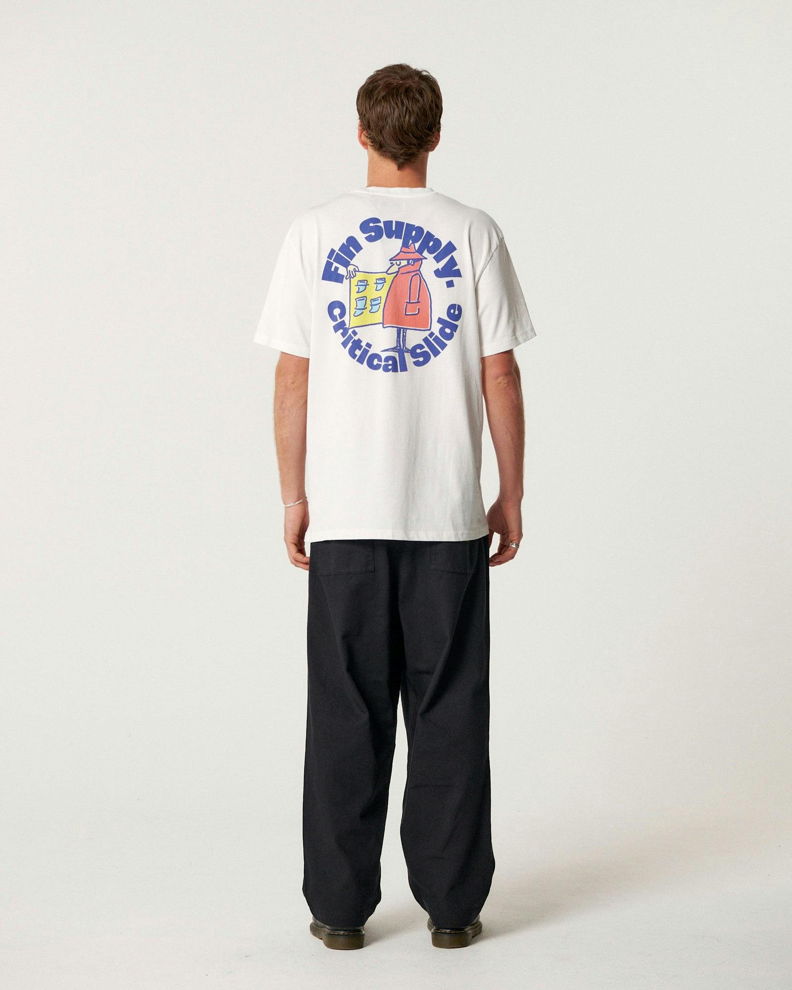 The Supply Tee is made from 230gsm cotton singles, washed before and after make to keep shrinkage at an all-time low. Cut in our regular fit tee—which still runs slightly oversized and drops off the shoulder. Our guy is 6'1" and wearing a Large.