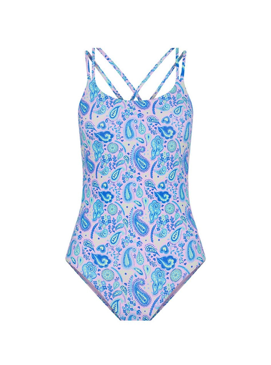 A summer without strings is the best kind of summer, and our new Teen Cross Back One Piece is set to dive in! It has a scoop neckline, dual fixed crossover straps, and internal shelf bra with removable foam cups. The low leg line and moderate bottom coverage create a flattering fit.