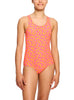 Our new Teen Racerback One Piece brightens every sunny day. Cool and comfy, it has a high neckline, wide fixed straps for easy movement, and internal shelf bra with removable foam cups. The open back gives a superior fit, along with a low leg line and moderate bottom coverage.