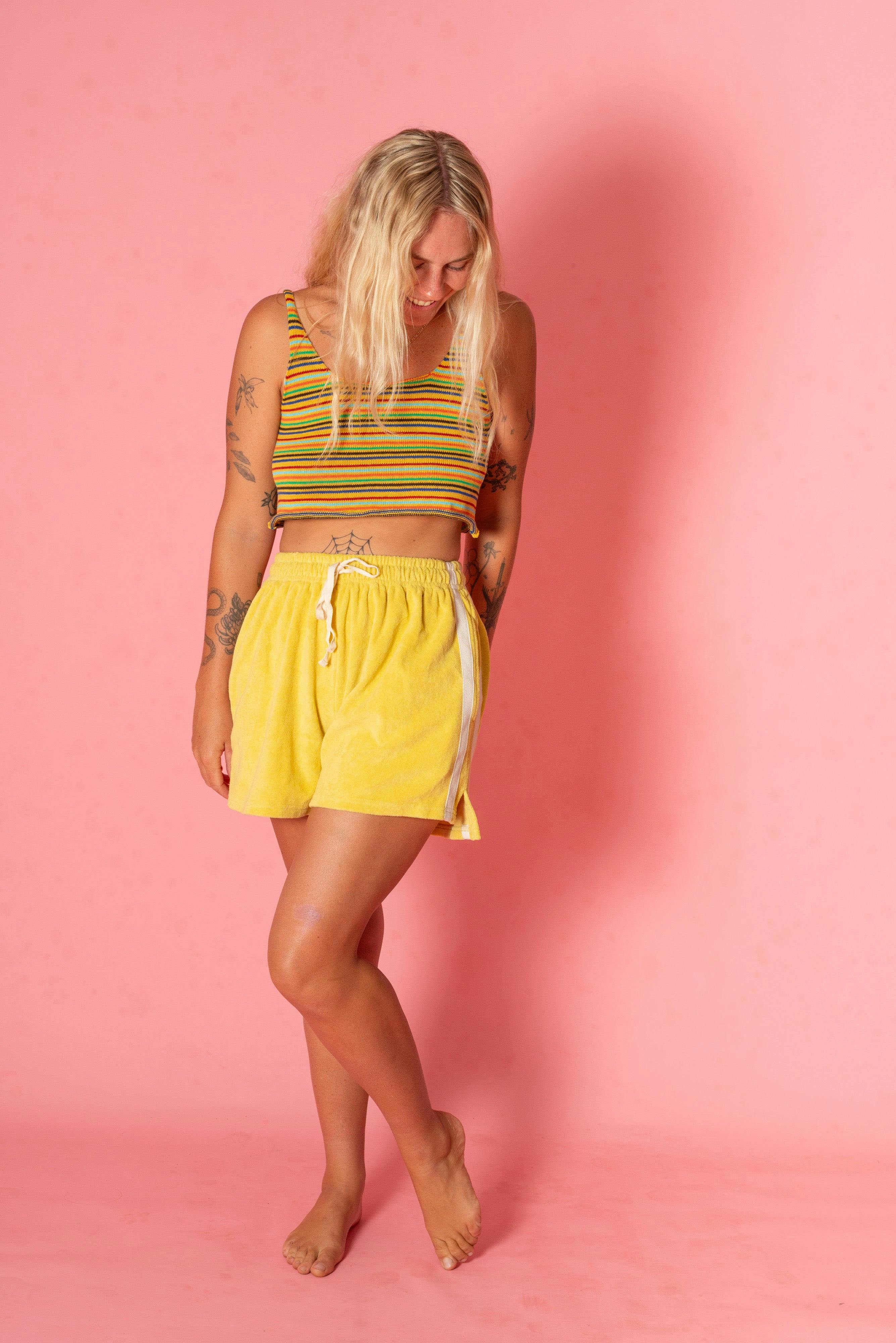 Cheer up in our best-selling Terry Towelling Shorts in butter perfect for slipping into after a day in the ocean!