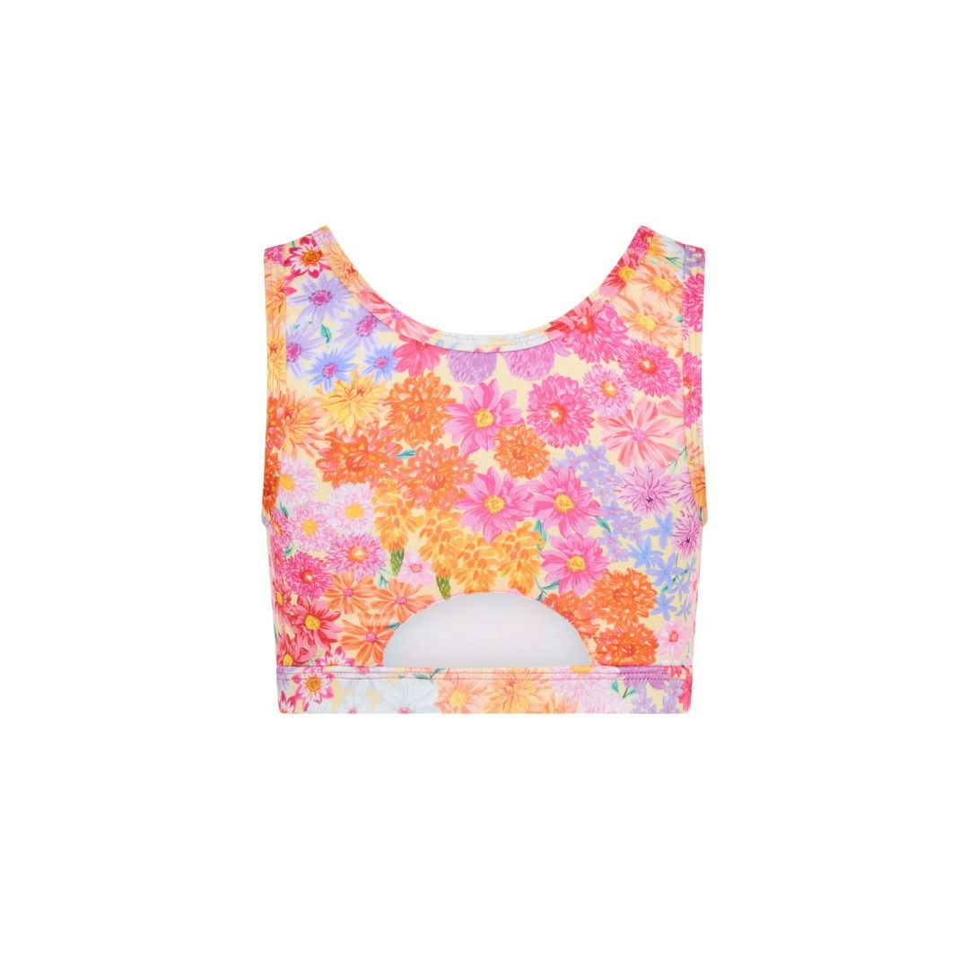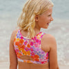 The Cleo Bikini Top is designed for little girls who love to move, play, and swim with confidence. Made from chlorine resistant fabric it’s built to handle long days in the water while keeping colours bright and vibrant. The elastic band ensures the top stays put - no riding up - while the cute cut-out back detail adds a playful twist. Fully lined for coverage and comfort, it’s made to mix and match with our cleo high waisted bikini bottoms, & harper rashies - for endless outfit combinations.