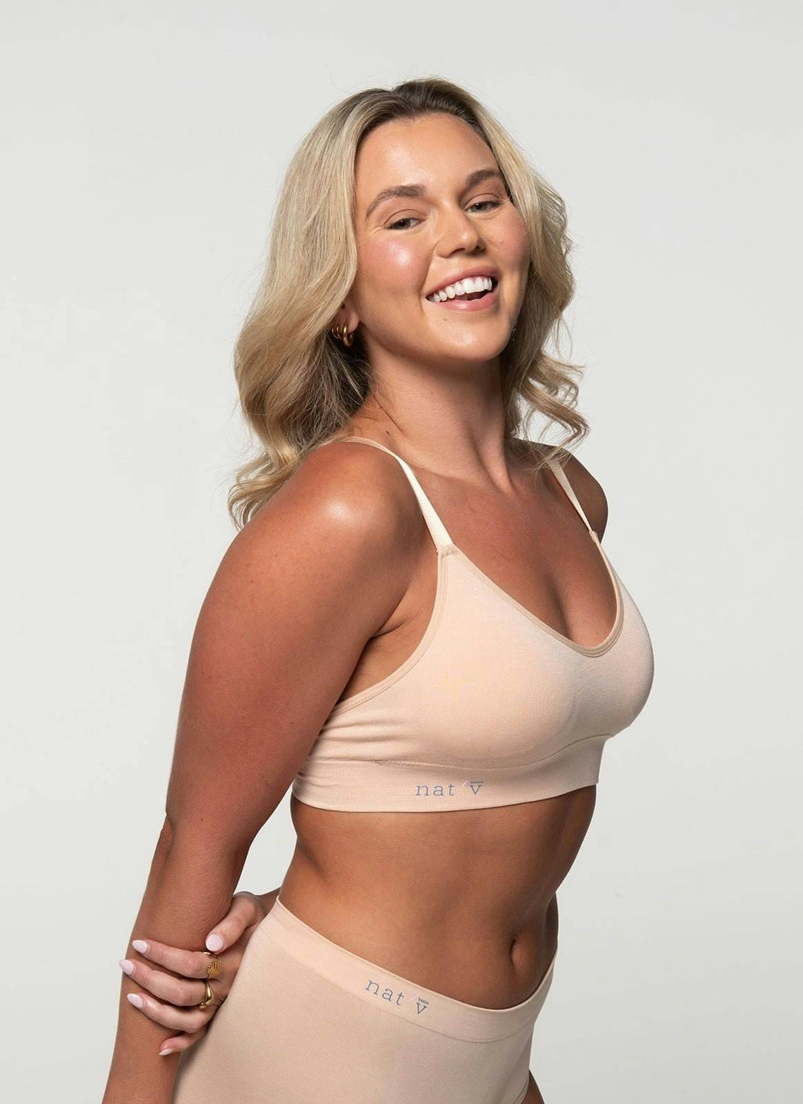 • Wire-free everyday crop in Bone nude