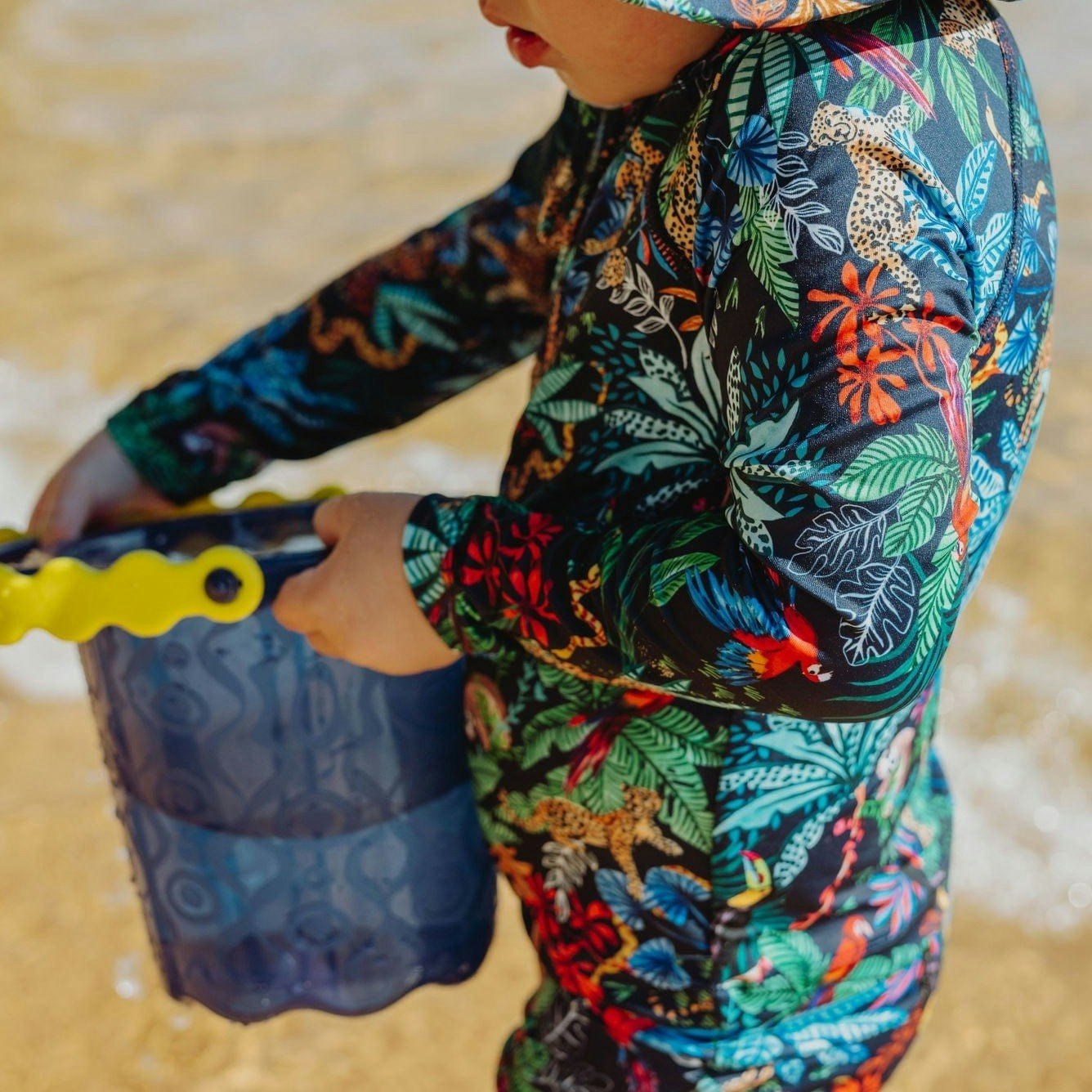 Our Amazon print is tropical jungle oasis filled with plenty of animal friends for your mini to take on their next water adventure. Which is your favourite?