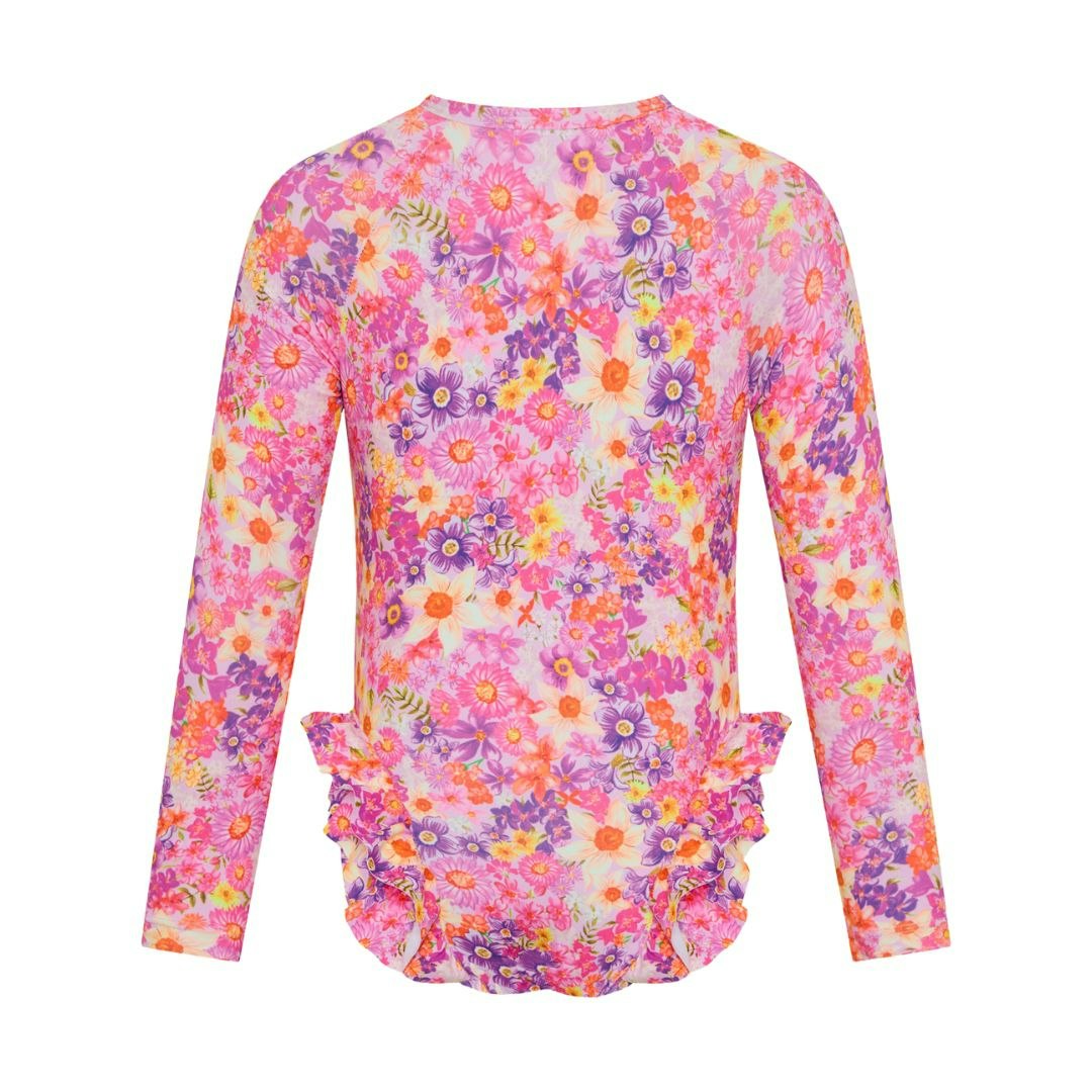 The Izzy Surfsuit is all about playful details and practical protection. Crafted from UPF 50+ and chlorine-resistant fabric, it keeps delicate skin safe and colours bright all season long. The long sleeves and a high neckline mean less sunscreen battles for Mum & Dad. While the gorgeous ruffle leg detailing around the leg means this cossie is made for splashing, playing, and memory-making all day long.