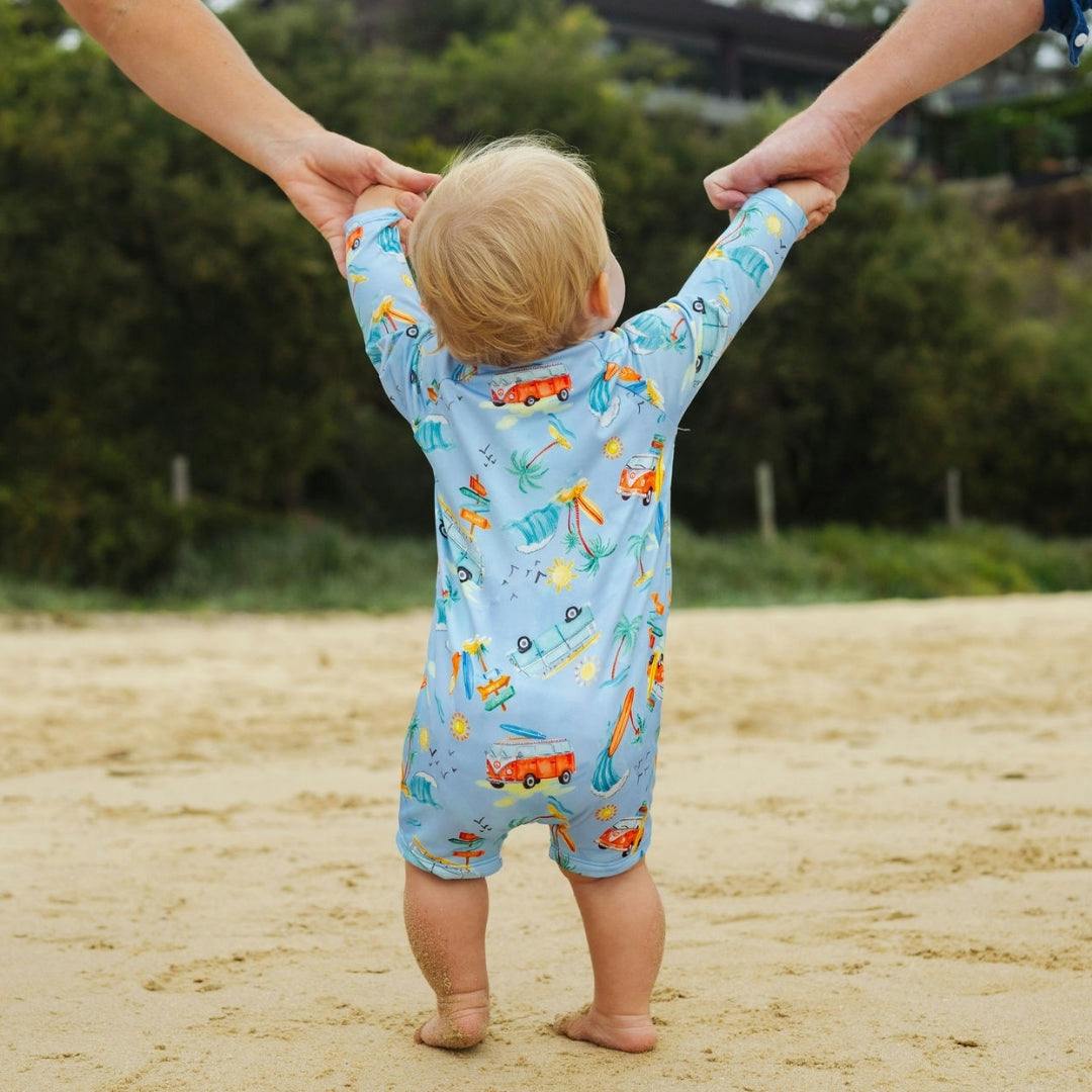 Made for wrigglers, built for busy parents. One outfit, great coverage, zero stress. Pair it with a surf hat for the ultimate sun smart outfit.