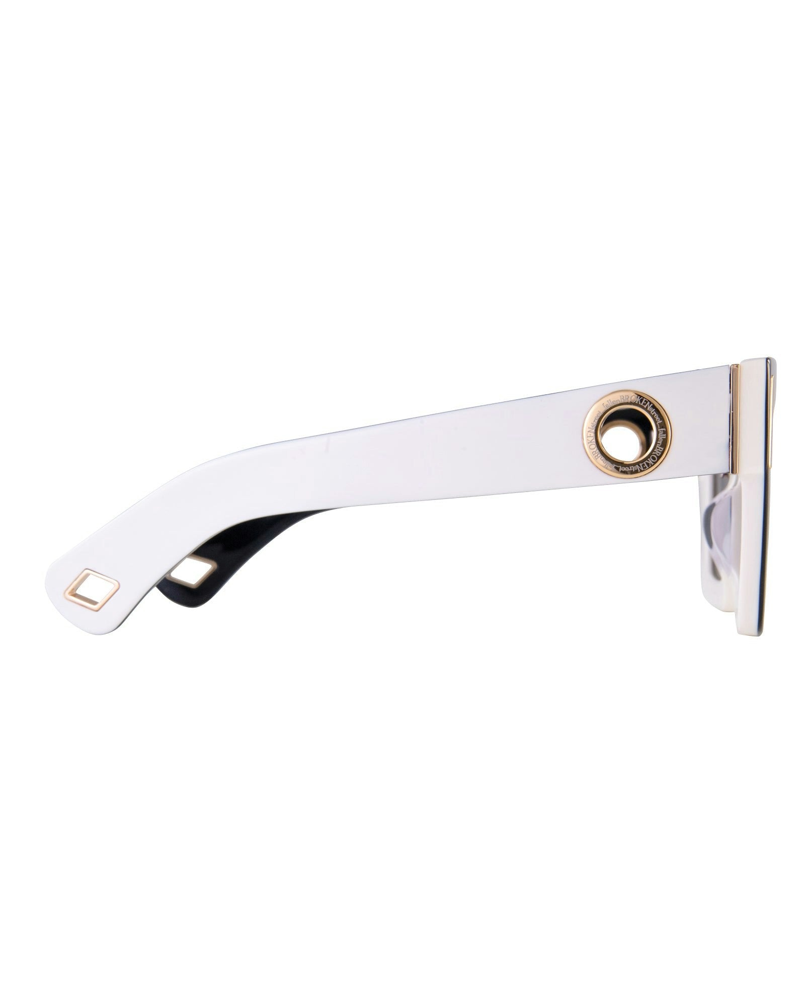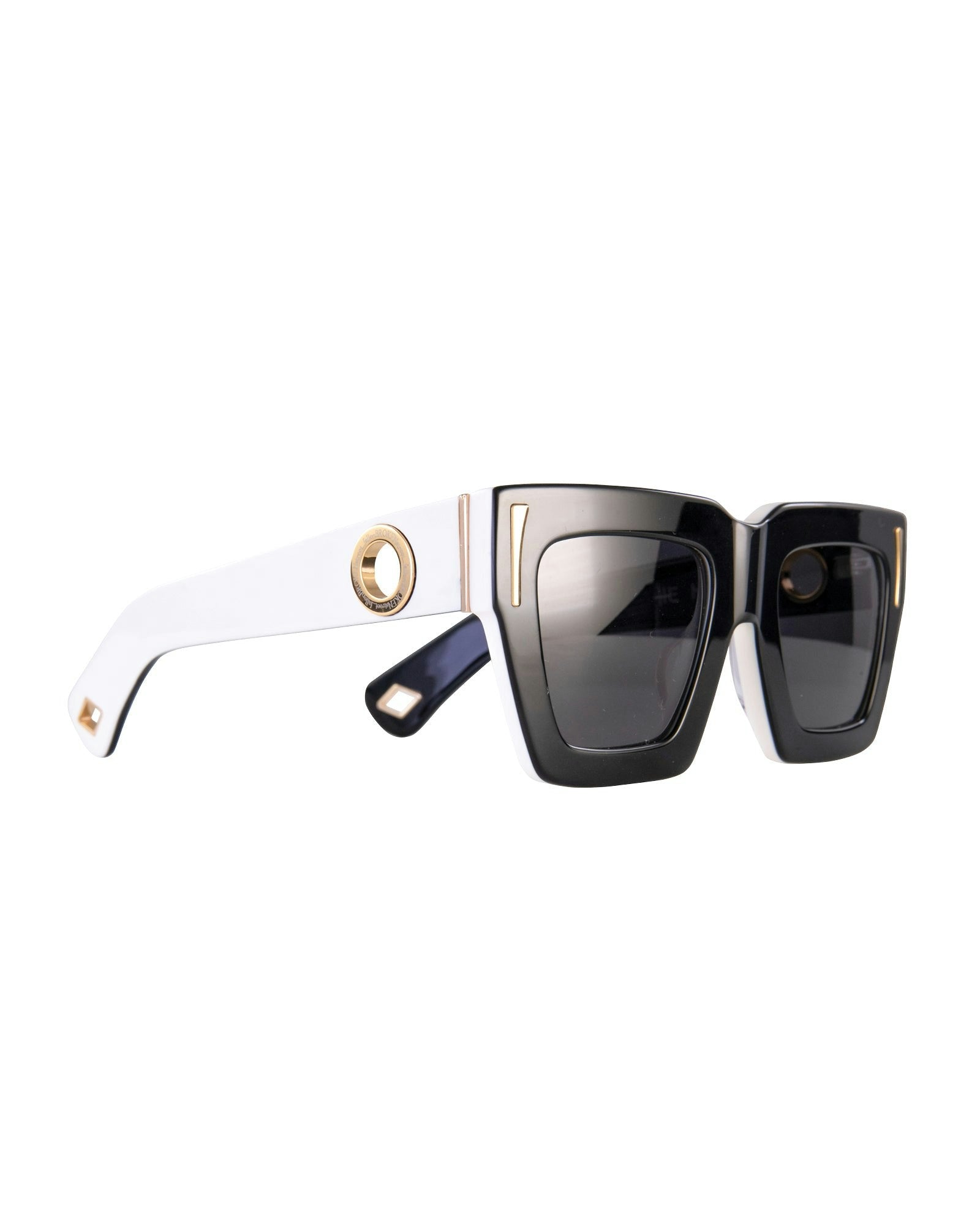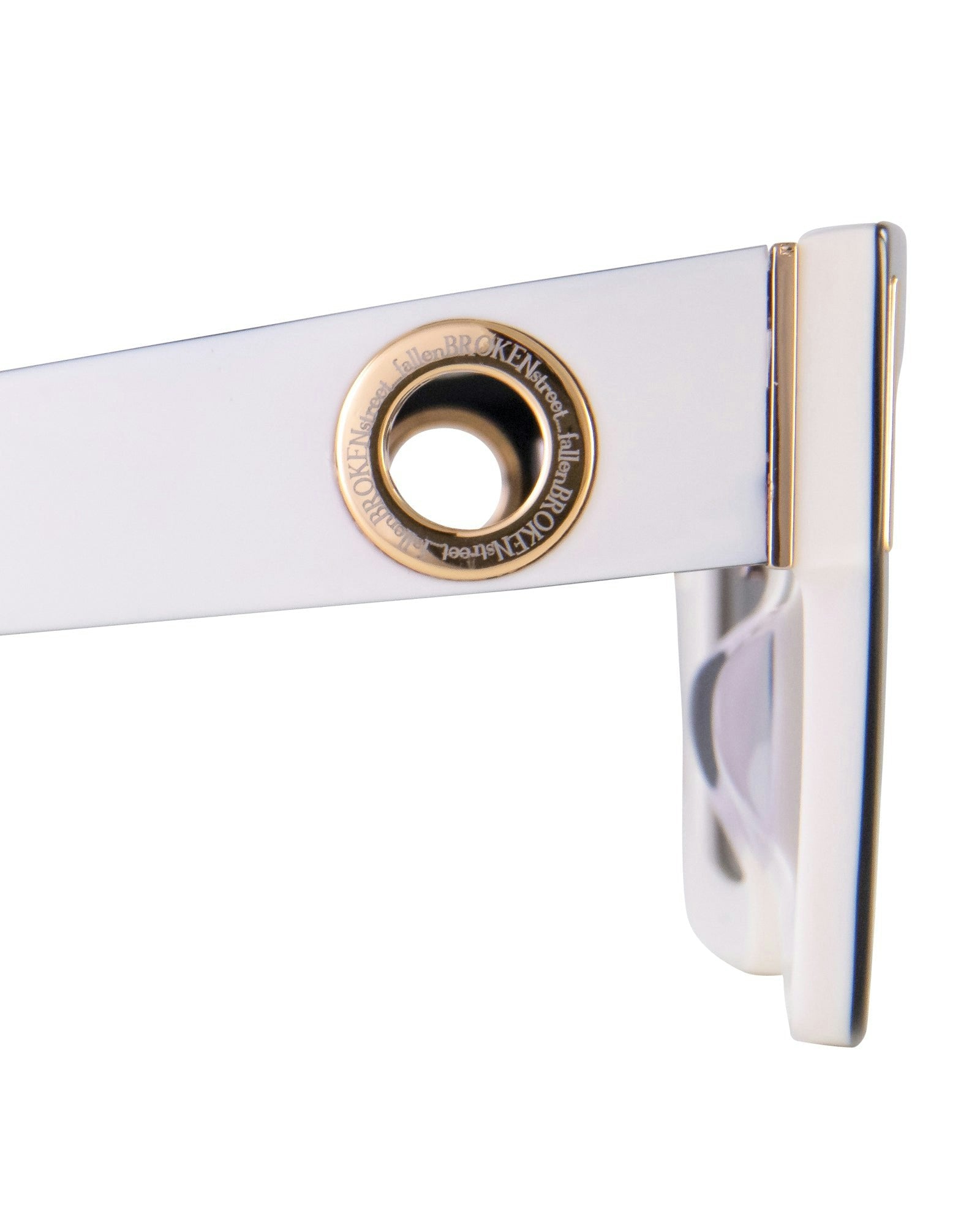 Meet The Mischief – White/Black, a bold vision reimagined in sculptural acetate. Designed for the curious and the unapologetically different, these polarised sunglasses feature crisp white arms, jet black lenses, and 24k gold finishings with chain link compatibility — front and back.