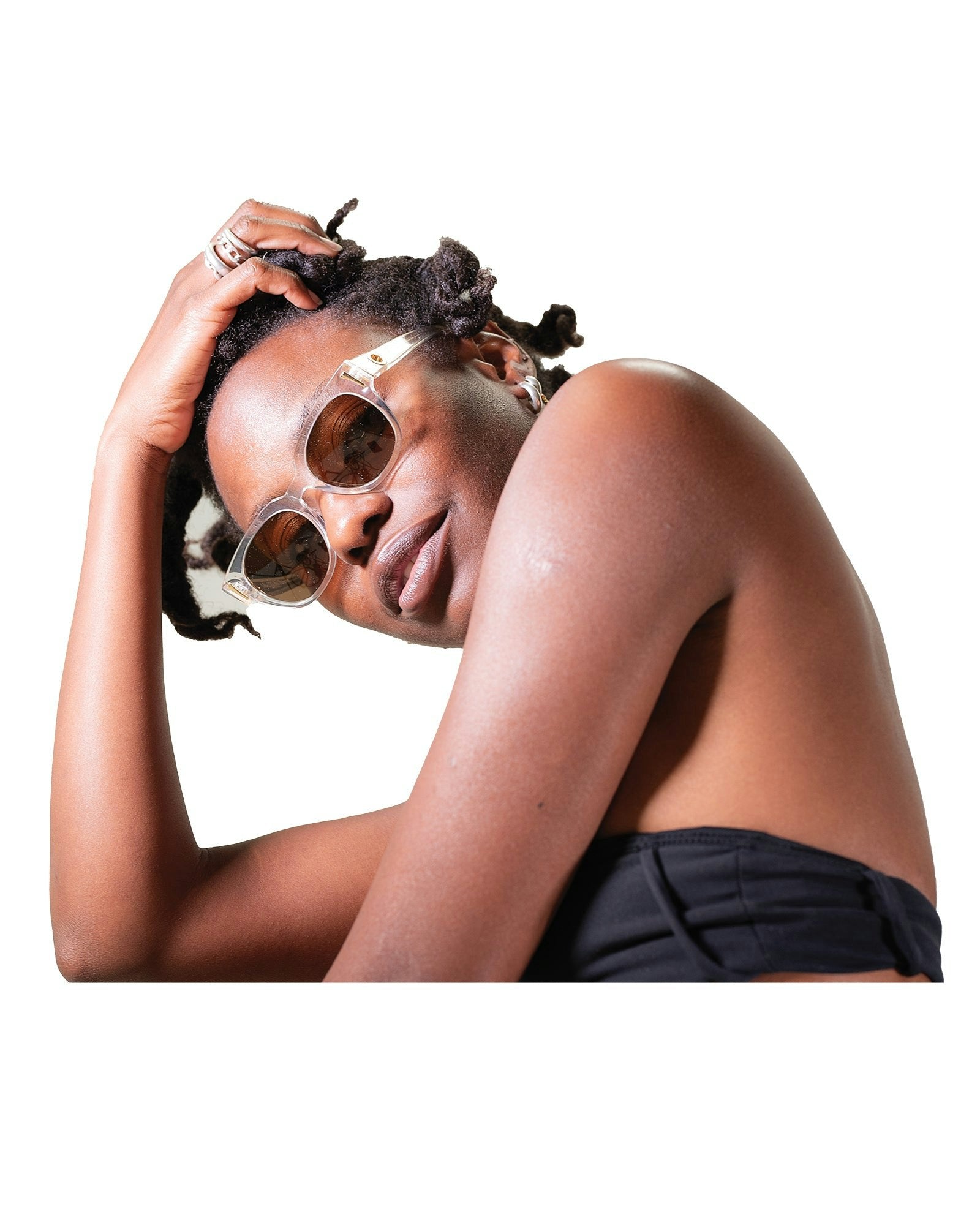 THE NYX – Skywalker blends warm bronze CAT3 lenses with a translucent ice-white acetate frame, finished with signature 24k gold hardware. Inspired by summer light, stargazing, and the calm before adventure.