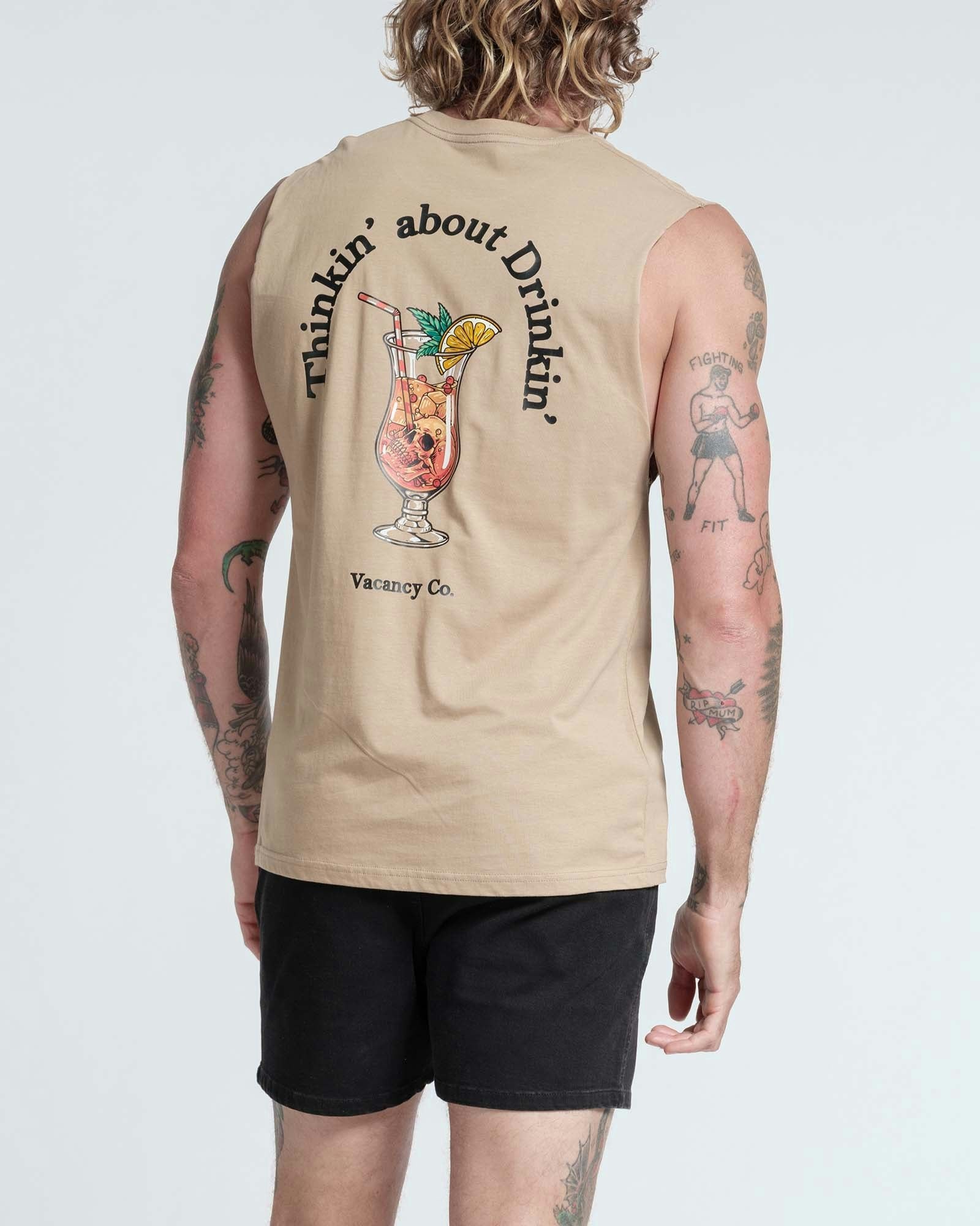 The Thinkin about Drinking Tank by Vacancy Co. is part of the newest release from Vacancy Co, with laid back summer style this Tank will be your new favourite go to.
