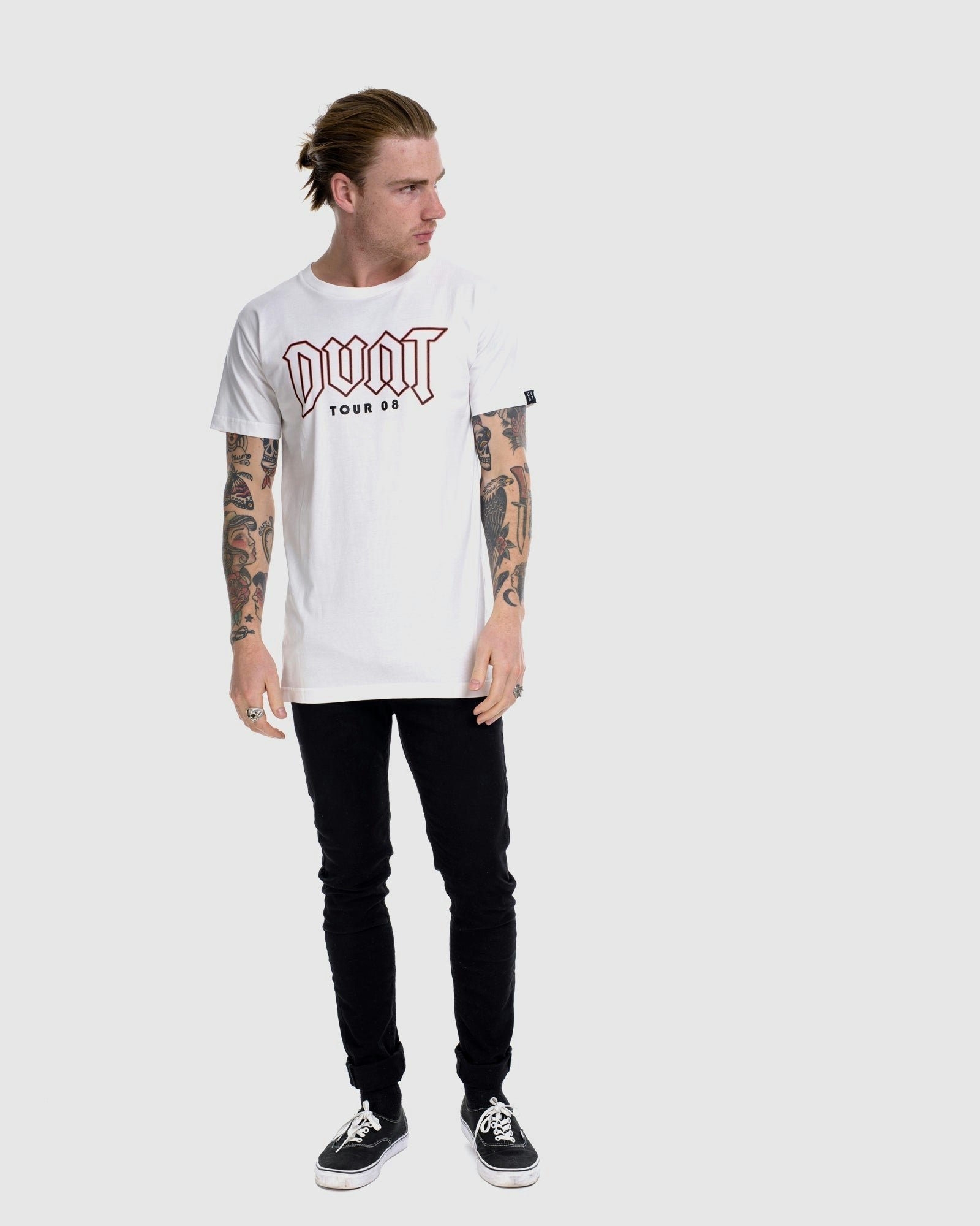 The Tour 08 Tee is an classic band style Tee featuring an unignorable bold chest and back print on our signature DVNT cut. Bringing the contemporary band look back to everyday this is a sublime piece to incorporate into your wardrobe and comes in a wide range of colours. Pair with ripped jeans for an on-trend casual look.